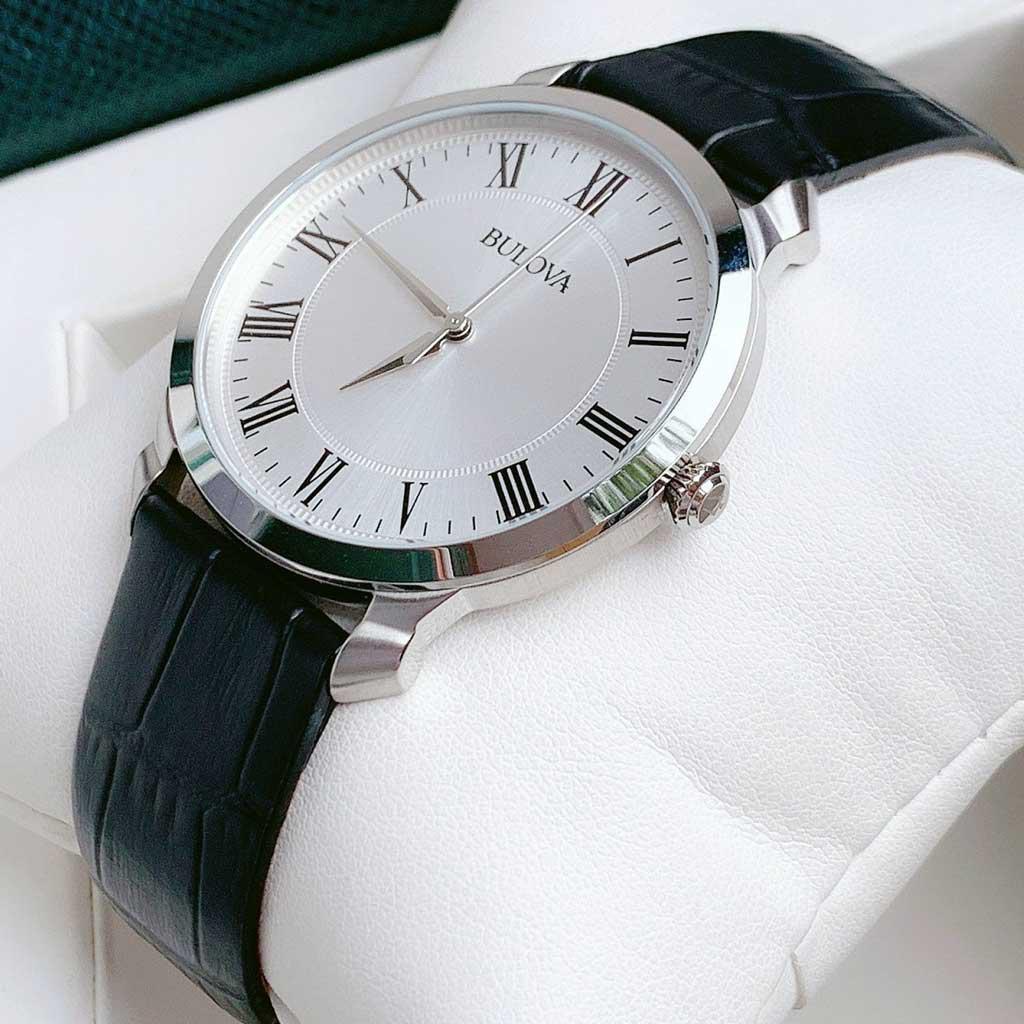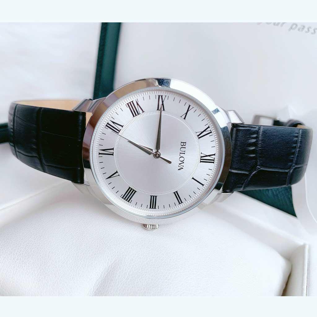 Với mặt đồng hồ Bulova 96A133 được thiết kế với hình tròn cổ điển, nền trắng mặt số, kim chỉ được làm mỏng, dây đeo bằng da đen bóng mang lại nét sang trọng, lịch lãm cho phái mạnh.
