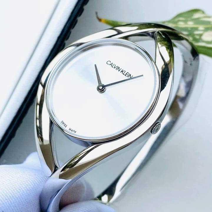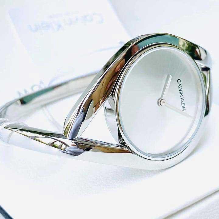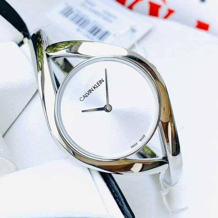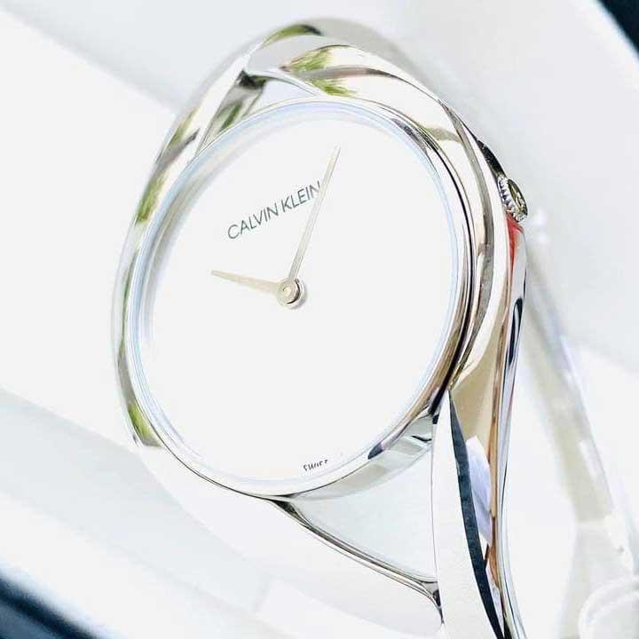 Hình dáng dòng chảy, giao nhau mang đến nét gợi cảm cho chiếc đồng hồ đeo tay mang tính biểu tượng bắt mắt này với hộp đựng nhỏ. Hình dáng đặc biệt của bên CALVIN KLEIN ôm sát cổ tay một cách thoải mái. Thời gian hiện hành đáng tin cậy đáp ứng khả năng trang bị phụ kiện cổ điển duyên dáng. Mặt đồng hồ tông màu bạc được bao phủ bởi một tinh thể khoáng trên lớp vỏ thép không gỉ 28mm. Đồng hồ có bộ máy thạch anh và khả năng chống nước đến 30 mét. Một chiếc móc gập giữ cố định vòng đeo bằng thép không gỉ 146mm.