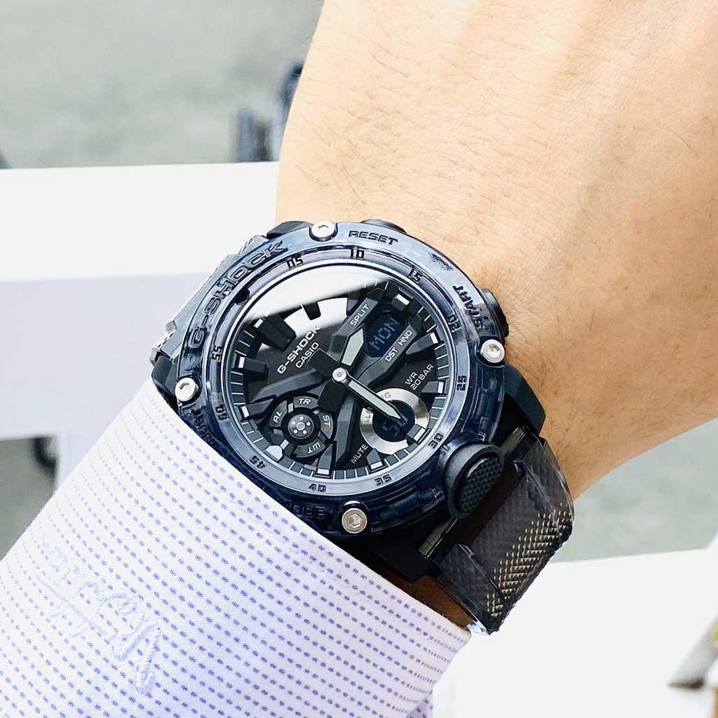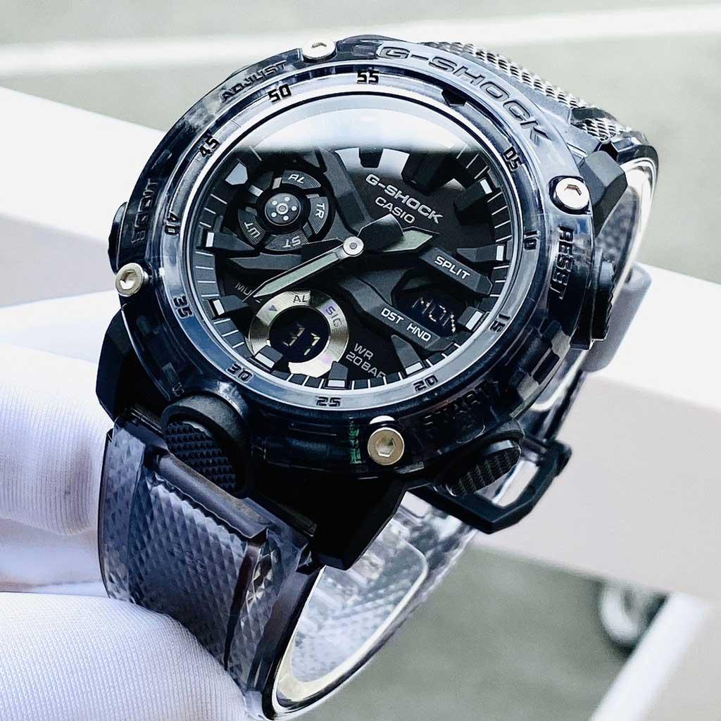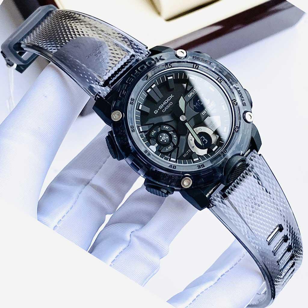 Đồng Hồ Casio G Shock GA-2000SKE-8A dành cho Nam với Dây Đeo Nhựa trong, Cấu Trúc Bảo Vệ Lõi Cacbon, phiên bản màu đặc biệt, chống nước 200m, đèn led siêu sáng nằm trong bộ sưu tập đồng hồ G Shock mới nhất bảo hành 5 năm. Từ G-SHOCK, theo đuổi sự dẻo dai và tiếp tục phát triển, một tác phẩm mới thuộc dòng khung bao gồm các bộ phận bằng nhựa trong suốt đã xuất hiện. GA-2000, một mẫu xe thể thao với vỏ carbon, đã được thêm vào màu kiểu khung xương xám. Giới thiệu một loạt dây nhựa trong mới cũng đang hoạt động như một mặt hàng thời trang với màu sắc sang trọng.
