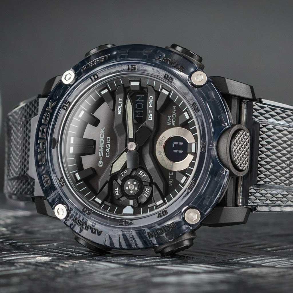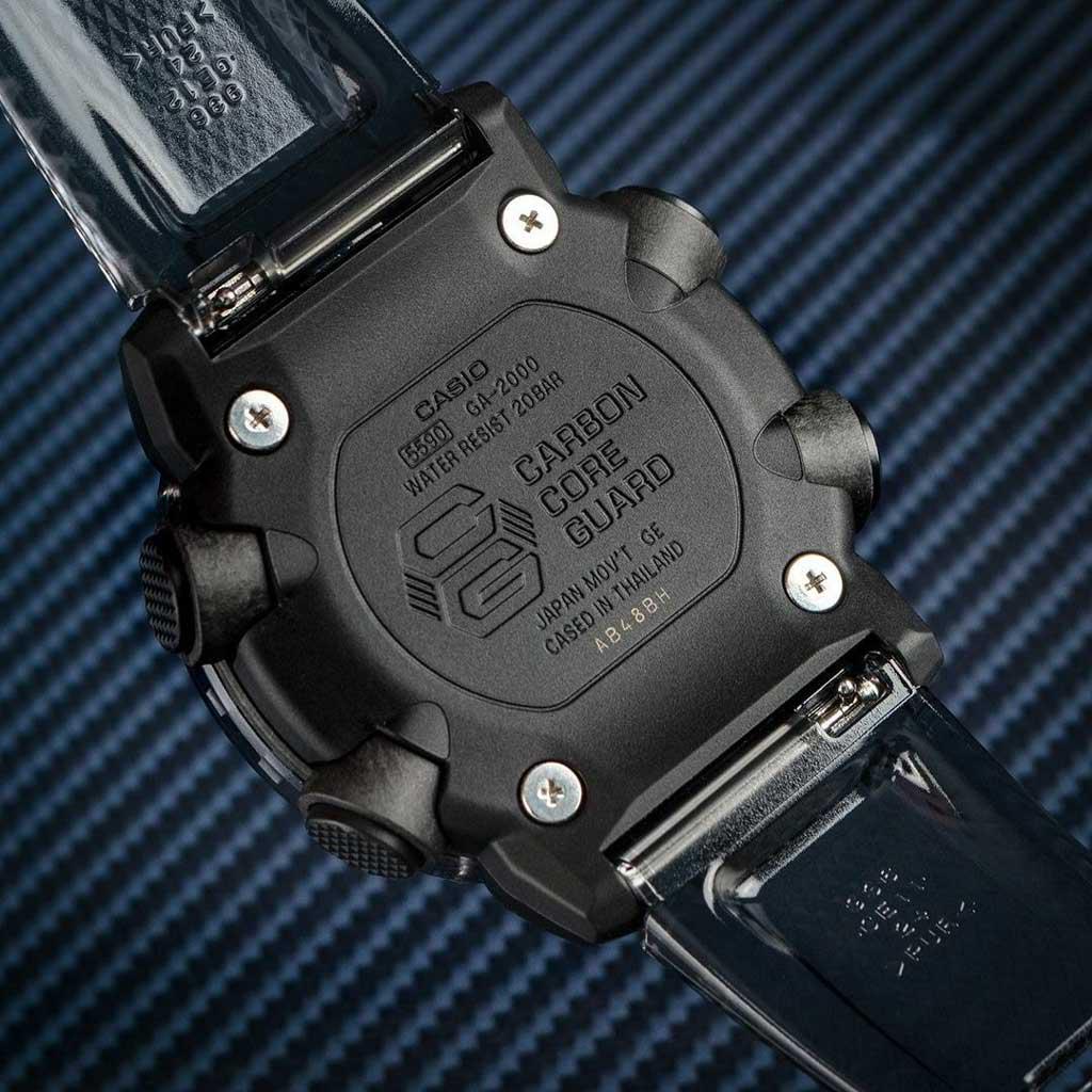 Kết cấu chống va đập mới mang đến độ bền ở tầm cao mới. Cấp độ độ bền mới Cấu trúc bảo vệ lõi cacbon: Cấu trúc bảo vệ lõi cacbon mới bảo vệ mô-đun bằng cách bao kín mô-đun trong lớp vỏ cacbon làm bằng nhựa tinh xảo được nhúng sợi cacbon có độ bền, sức chịu nứt vỡ và sức mạnh vượt trội. Kết cấu chống va đập mới này đánh dấu bước tiến quan trọng về công nghệ lõi của G-SHOCK, biến mẫu này thành mẫu mang tiêu chuẩn mới của dòng sản phẩm G-SHOCK. • Kết cấu nút không có bảo vệ • Nắp sau kép Thiết kế mạnh mẽ với phong cách ngoài đường phố. Dây đeo có thể thay dễ dàng: Dây đeo đúc hai màu loại thanh trượt Hoạt động mặt đồng hồ năng động: Mặt số đĩa Thiết kế mặt đồng hồ táo bạo: Mặt đồng hồ ba chiều Màn hình dễ đọc: Dịch chuyển kim Thiết kế có sức ảnh hưởng lớn: Nút bấm lớn phía trước Dễ dàng đọc thông tin trên đồng hồ kể cả trong bóng tối: Đèn chiếu sáng cực mạnh (đèn LED đôi có độ sáng cao)
