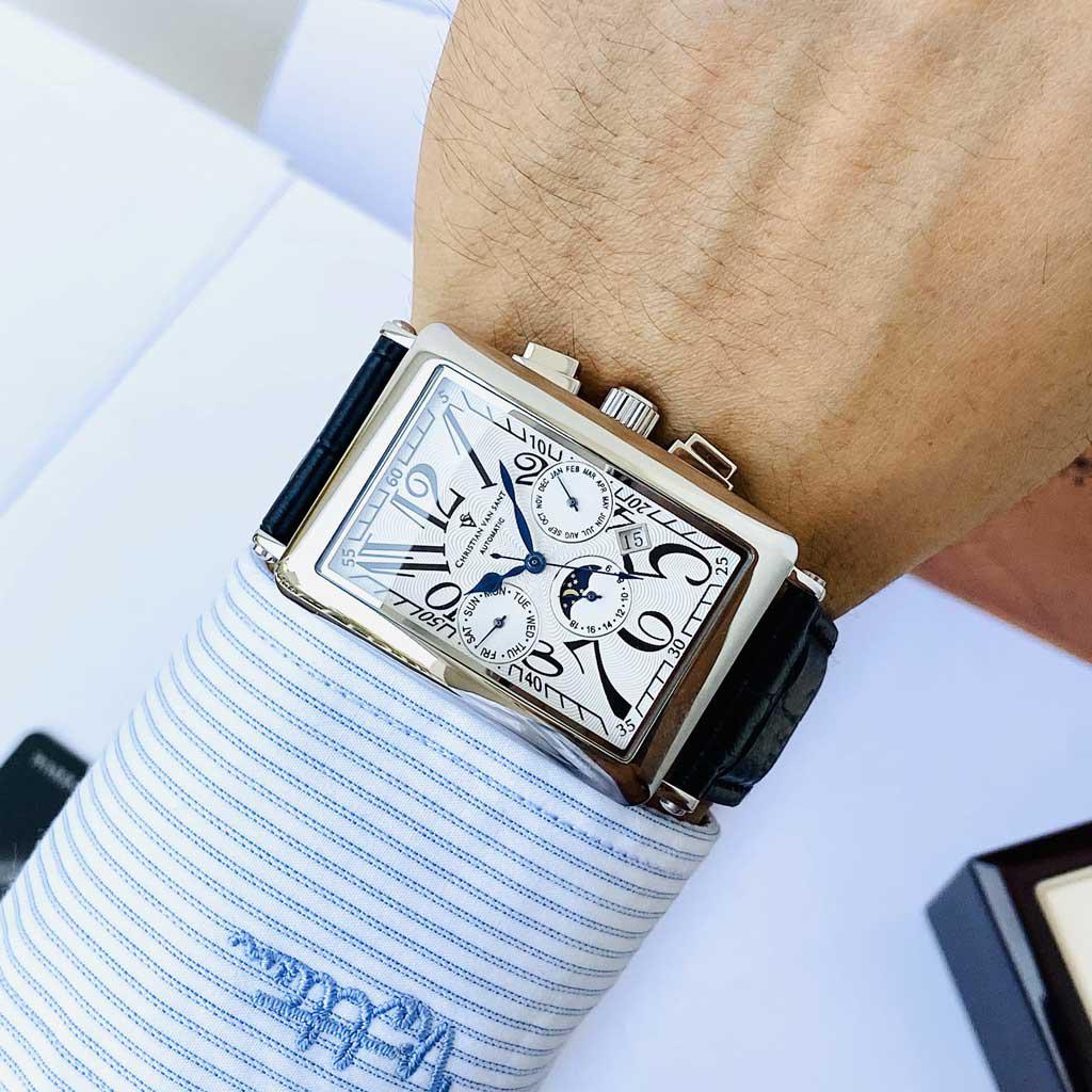 💯 Giải toả cơn khát hàng phom chữ nhật cho mọi khách hàng thân iu chờ đợi mỏi mòn! 💯 Hàng độc quyền bảo đảm mỗi nhà e có, sẳn 4 màu 💯 Về hơn trăm cái vẫn không đủ để bán đây rồi !!! 👑 Siêu phẩm CHRISTIAN VAN SANT form vuông cực kì hiện đại, trẻ trung , chẳng hề kém cạnh mọi đối thủ lừng danh Lần đầu tiên xuất hiện tại thị trường Việt Nam ✴️ Size 32 x 44 ✴️ Máy automatic ✴️ Dây da chính hãng