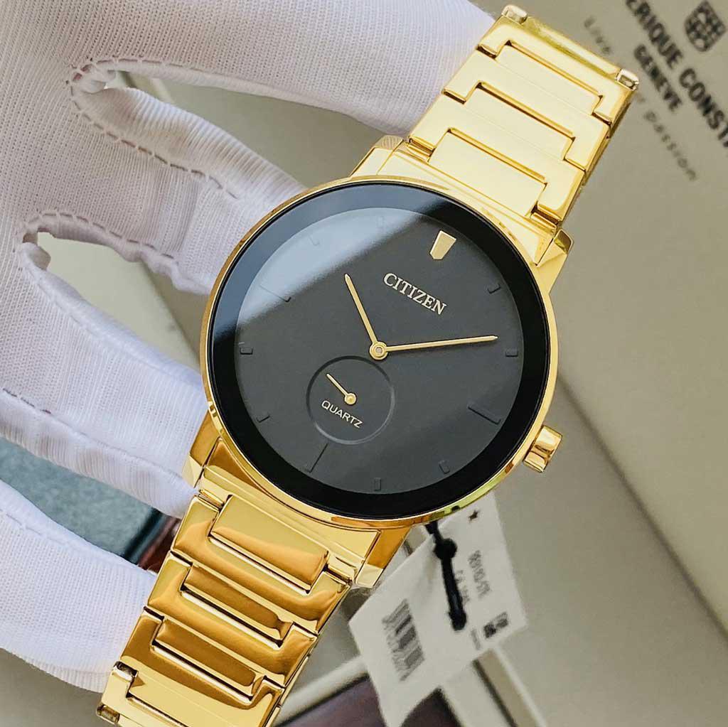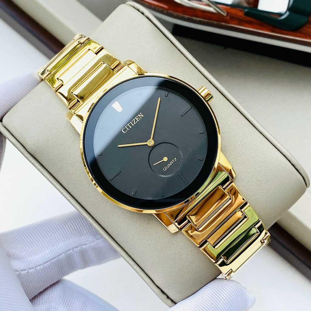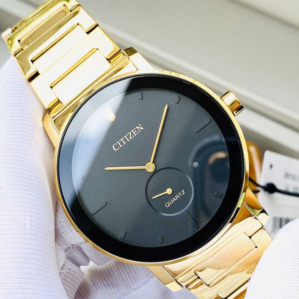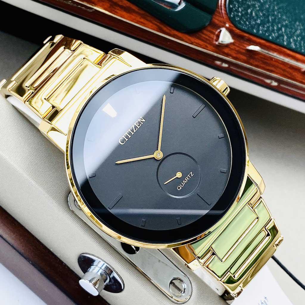 Citizen BE9182-57E là chiếc đồng hồ nam có thương hiệu Citizen, một hãng đồng hồ nổi tiếng đến từ đất nước Nhật Bản. Mặt số tông đen tối giản, dây và vỏ mạ gold cao cấp tăng thêm vẻ sang trọng