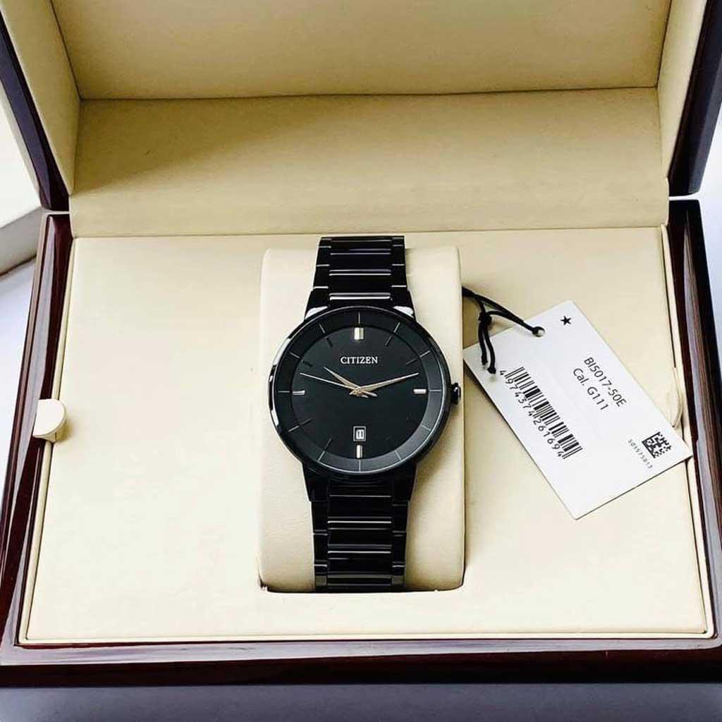 Đồng hồ chính hãng CITIZEN CẶP ĐÔI BI5017-50E VÀ EU6017-54E dây, vỏ inox đúc nguyên khối mạ màu đen công nghệ PVD cao cấp không phai, kính khoáng cứng chống va đập, kiểu dáng đồng hồ thời trang 3 kim quay hiển thị giờ, phút, giây và 1 lịch ngày.