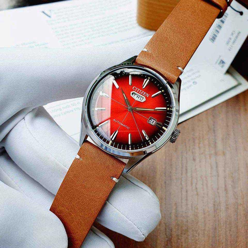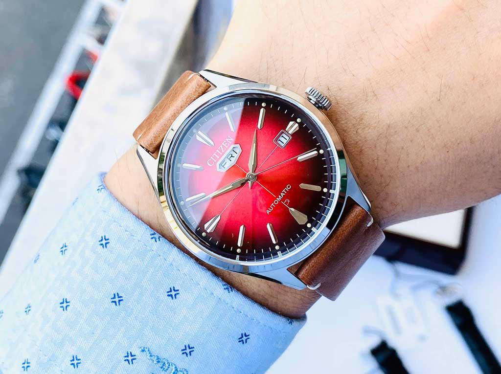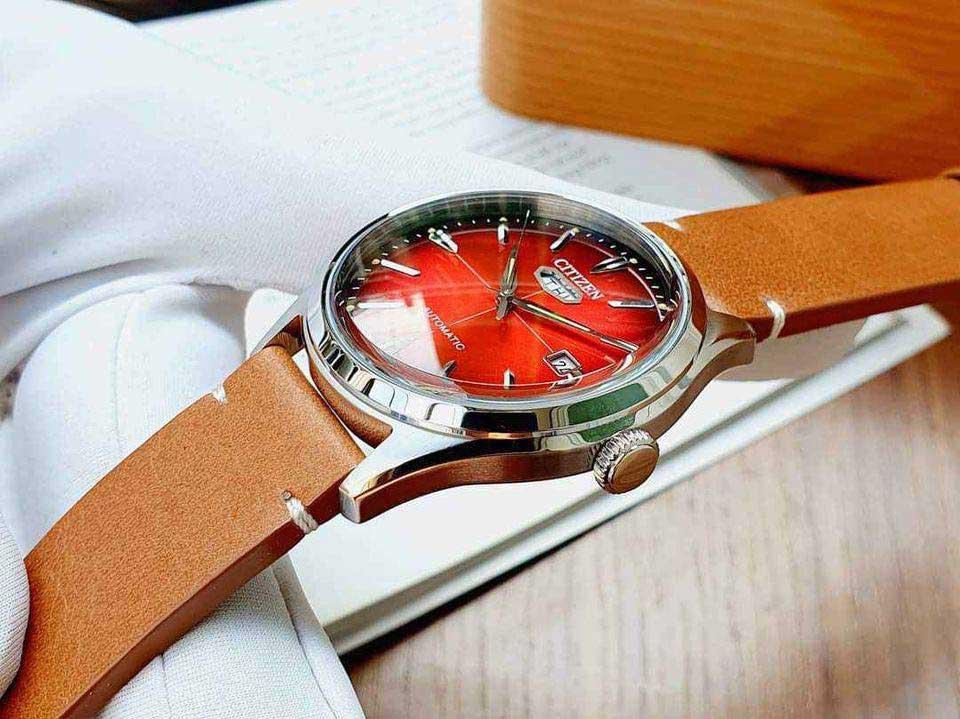 Mẫu Citizen C7 NH8390-11X phiên bản da nâu trơn lịch lãm trẻ trung kết hợp cùng thiết kế đơn giản 3 kim trên nền mặt số size 40mm phối tone màu đỏ nổi bật. Cuối năm 2020, thương hiệu đồng hồ Citizen đình đám đã khuấy động thị trường bằng cách cho ra đời bộ sưu tập mang tên C7. Trong đó, phiên bản Citizen C7 NH8390-11X được mệnh danh như “mặt trời đỏ” thu nhỏ với tạo hình mặt số ấn tượng, thu hút sự chú ý của nhiều tín đồ đam mê đồng hồ trên toàn thế giới.