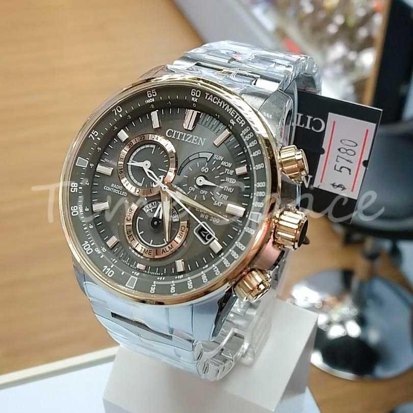 Các tính năng: Vỏ thép không gỉ và tông màu vàng hồng 43mm, Mặt số màu xám với kim và vạch chỉ giờ màu vàng hồng, Bộ đếm giờ thế giới, Lịch vạn niên, Chỉ báo dự trữ năng lượng, Chronograph / Lịch / Báo thức, Tachymeter, Công nghệ hiện hành nguyên tử với điều chỉnh thời gian đồng bộ khả dụng ở 43 thành phố trên thế giới, Điều khiển radio, Chronograph 1 giây, Tinh thể sapphire chống phản chiếu, Tông màu vàng hồng và vòng đeo tay bằng thép không gỉ có khóa gập với các nút ấn ẩn, khả năng chống nước 200 mét, Kiểu dáng Citizen #: CB5886-58H