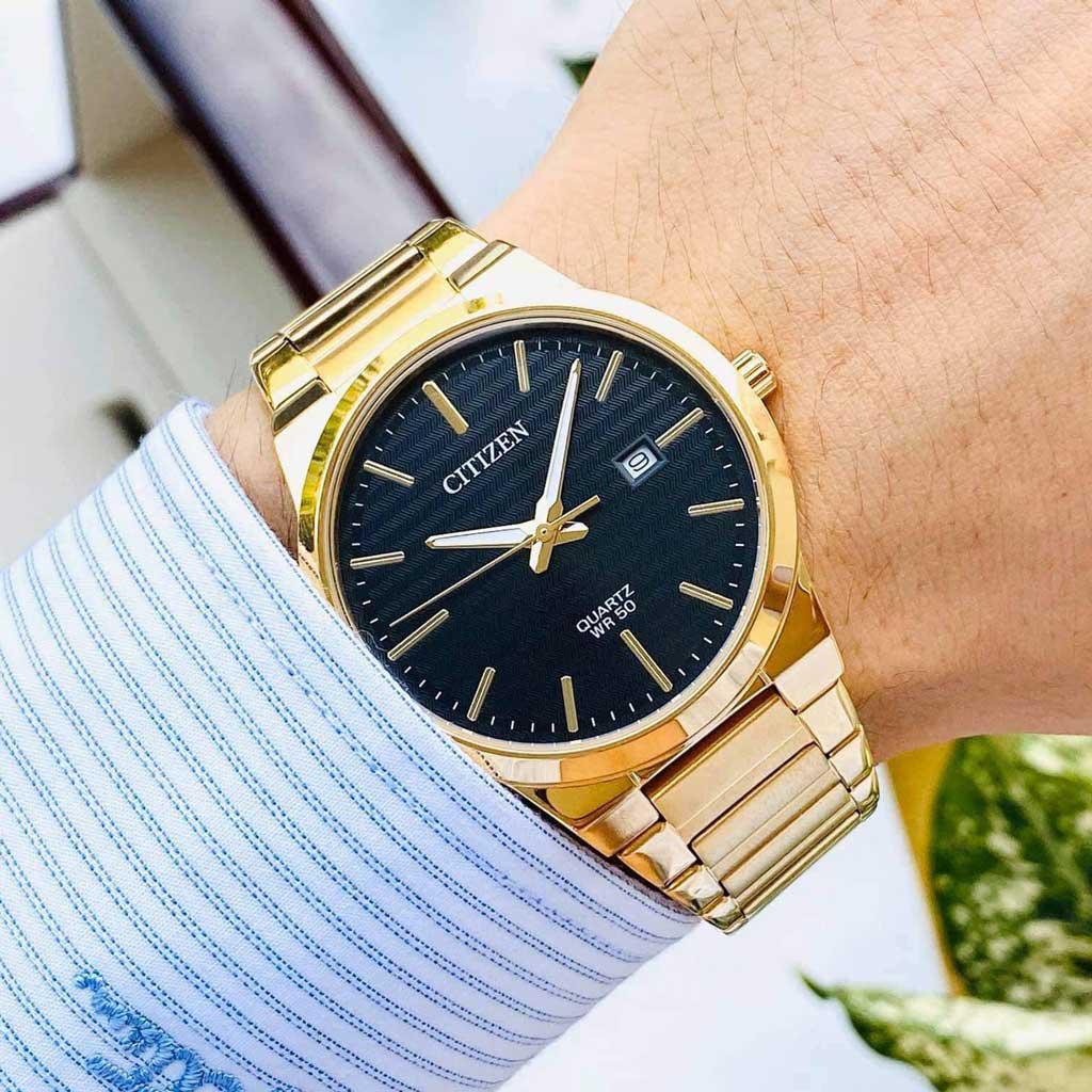 Citizen Nam BI5062-55E Mẫu đồng hồ kim này có gam màu vàng sang trọng và thời thượng, là thiết kế đẳng cấp dành cho các quý ông lịch lãm, phong độ