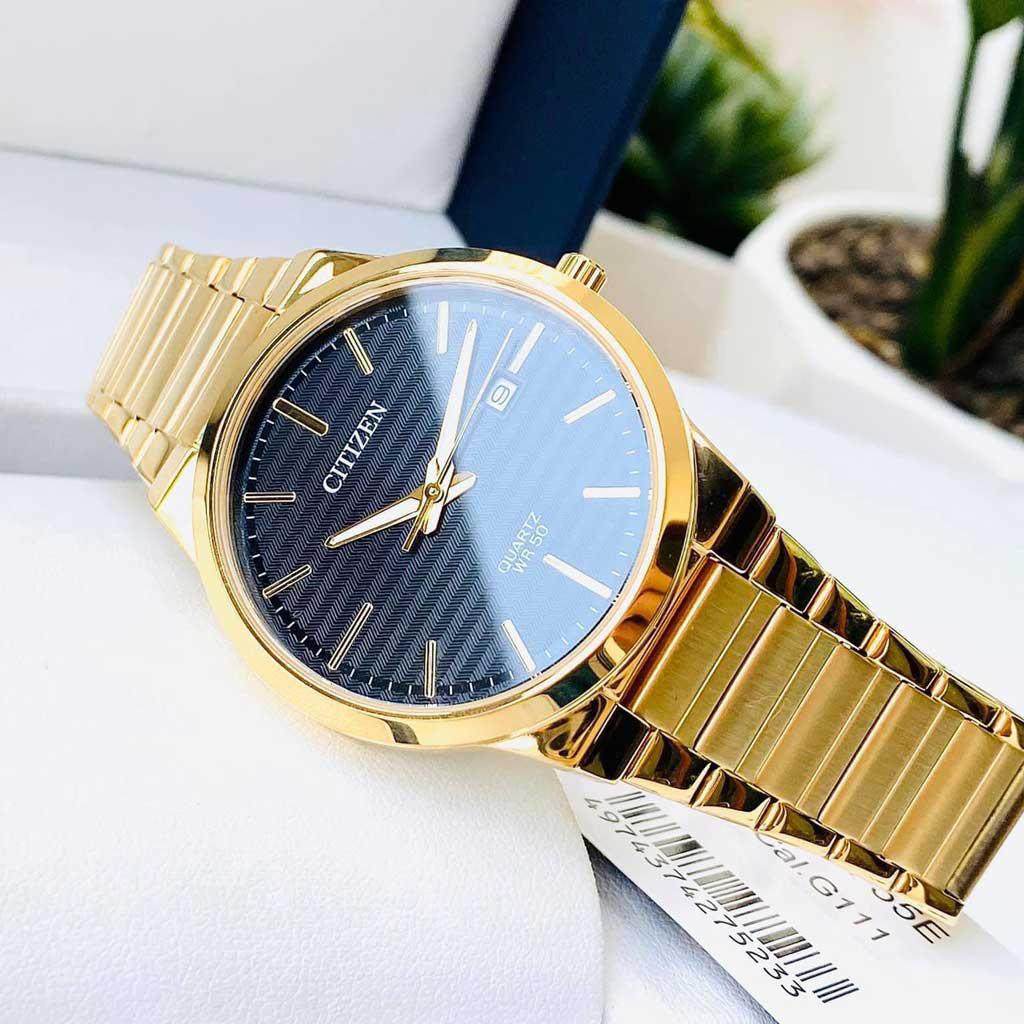 Đồng hồ Citizen BI5062-55E mẫu nam xuất xứ từ Nhật Bản, sử dụng bộ máy pin hoạt động chính xác và bền bỉ. Dây và vỏ được thiết kế chất liệu thép không gỉ hạn chế ăn mòn cao, mạ màu vàng bằng công nghệ PVD khó phai màu. Mặt kính khoáng cứng chịu lực tốt. Có lịch thứ ngày vị trí 3h truyền thống. Độ chịu nước lên đến 5 bar, có thể đi tắm, đi bơi nhẹ. Phù hợp với các anh chàng thích sự đơn giản mà vẫn nổi bật.