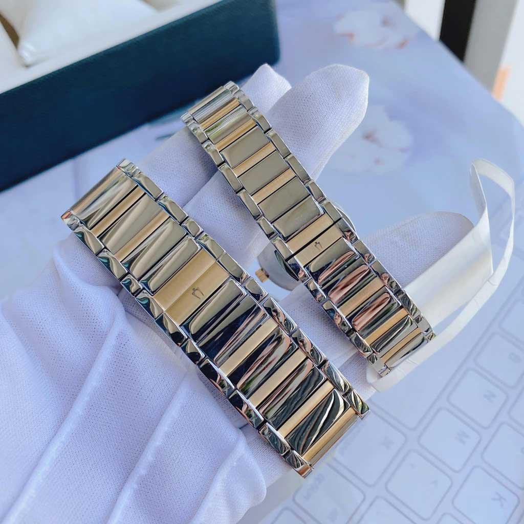 - Đồng hồ nam đính 4v kim cương và kèm ô lịch ngày tiện dụng. Đồng hồ nữ được điểm 12v kim cương tấm cho 12h cực kì sang trọng và hút mắt.