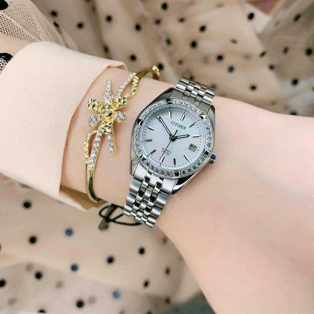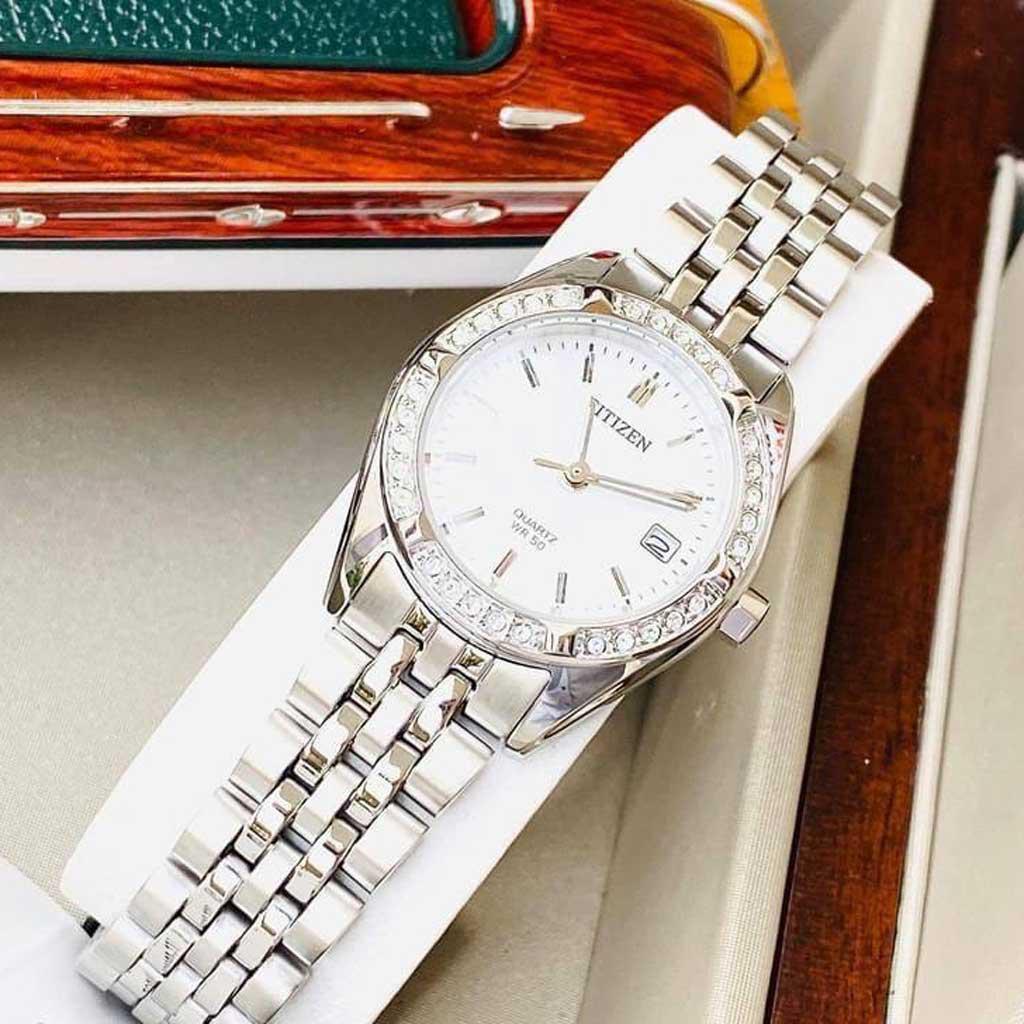 Mẫu đồng hồ nữ Citizen EU6060-55D mặt đồng hồ tròn nhỏ nữ tính với viền ngoài thiết kế tinh xảo phong cách thời trang, vỏ máy cùng dây đeo kim loại màu bạc tạo nên nét đẹp sang trọng cho phái nữ. Mẫu Citizen BE9170-56A nổi bật tạo nên vẻ ngoài độc đáo của mẫu đồng hồ với phần kim giây được thiết kế kiểu dáng không đồng trục, vạch số được gia công mỏng tạo nên sự tinh tế cho phái nam.