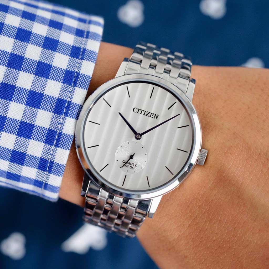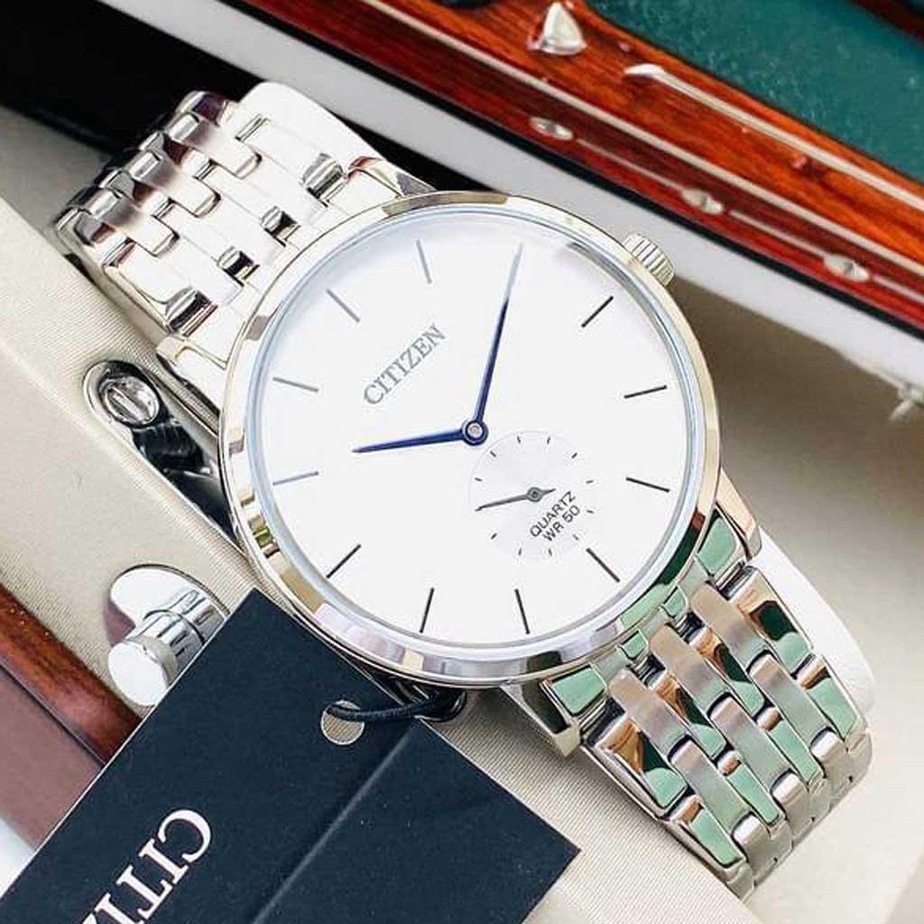 Ai nói Citizen chỉ thích hợp cho quý ông thành đạt? Đơn cử như phiên bản đồng hồ Citizen BE9170-56A EU6060-55D cũng đủ khiến để giới trẻ đê mê. Tất cả là nhờ thiết kế 3 kim nhưng không đồng trục cực kỳ ăn khách. Cụ thể, phần kim giờ và kim phút được thiết kế như bình thường, riêng kim giây được bố trí với mặt số mini riêng tại góc 6 giờ. Một phần tạo sự khác biệt, phần còn lại giúp mang đến góc nhìn độc lạ và người dùng dễ dàng quan sát. Họa tiết trên mặt đồng hồ cũng bắt mắt không kém. Đặc biệt, nhờ phối màu trắng sẽ góp phần tăng khả năng hiển thị. Theo nhận định từ một số người dùng thì màu trắng sẽ dễ phối đồ hơn bất kỳ tông màu nào khác.