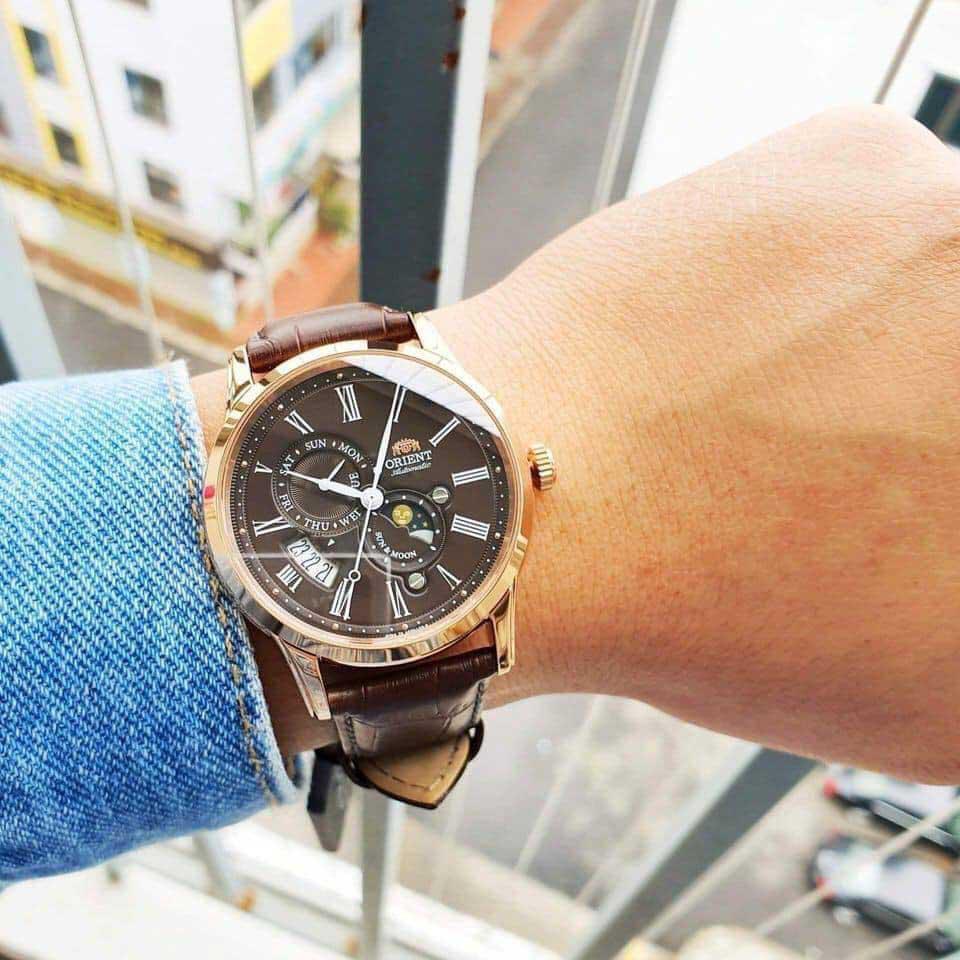 Orient Sun & Moon Gen3 SAK00003T0(FAK00003T0) và RA-KA0002Y00B cho khả năng chống nước: 50 mét (5-bar), giúp bạn có thể thoải mái đi dưới trời mưa lớn, tắm, rửa tay (không nên để núp chỉnh tiếp xúc thẳng nước từ vòi phun). Theo tiêu chuẩn, bạn vẫn có thể bơi trên mặt nước nhưng nên hạn chế vì áp suất nước khi bơi và sóng đánh vào có thể khó kiểm soát bạn nhé. Bạn lưu ý đồng hồ chỉ chống nước đúng theo tiêu chuẩn khi chưa bị vỡ, móp méo (vì có thể làm hỏng ron cao su), và núm chỉnh giờ phải được đóng kín nhé!