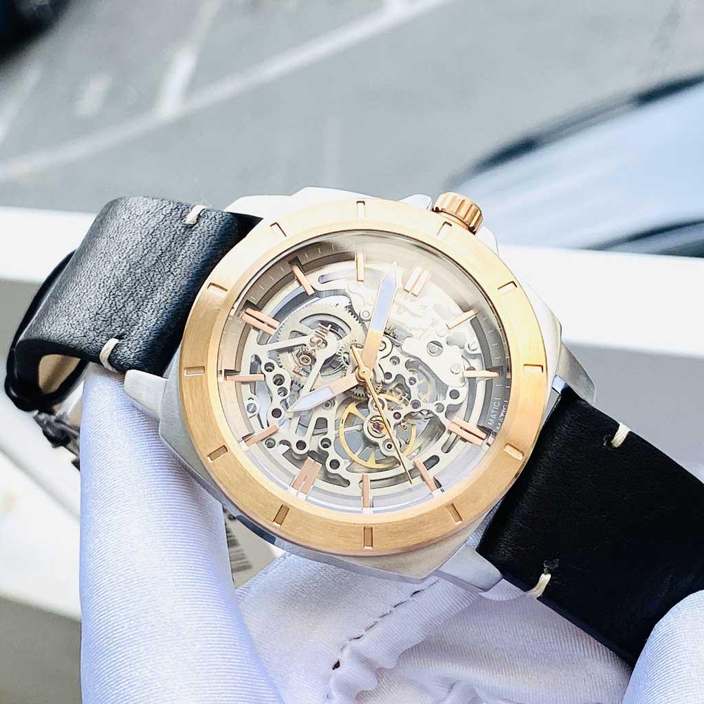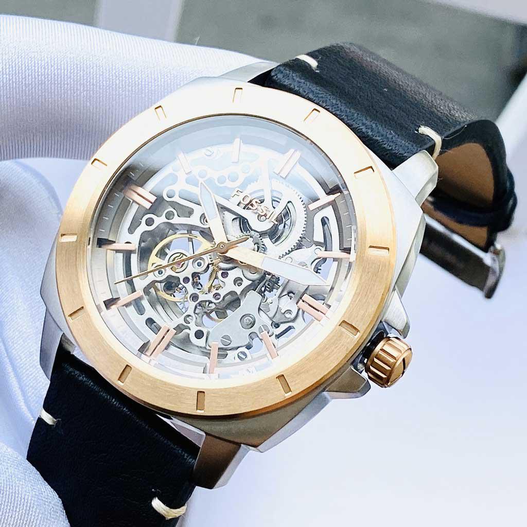 ⌚️ Đồng hồ Fossil Privateer Sport Mechanical Black Leather Watch BQ2428 lộ cơ, nam tính cho Nam. Thiết kế lộ cơ cực cá tínhh kết hợp dây da siêu chắc chắn, menly cho các bác