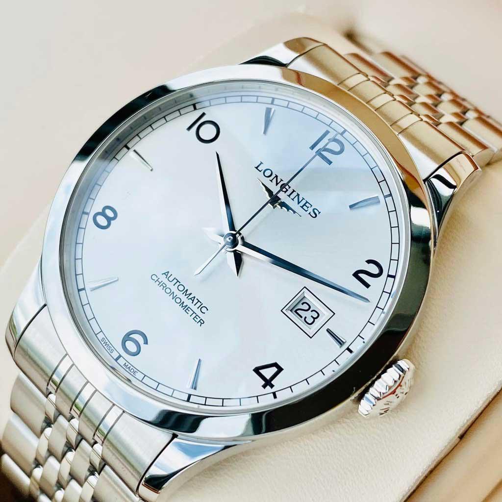 Đồng hồ Longines Record L2.820.4.76.6 L28204766 – mẫu đồng hồ chuẩn công sở lịch lãm sang trọng. Vỏ thép dây thép cực đẹp, chất thép sáng bóng. Máy Auto Thụy Sỹ đạt chuẩn Chronometer (tiêu chuẩn cực cao để đánh giá độ chính xác của máy đồng hồ)