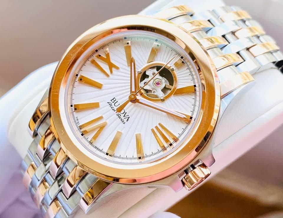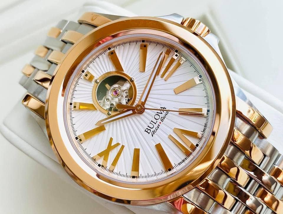 Đồng hồ nam Bu.lo.va Accutron Automatic 65A105- Người Mỹ mang trái tim Thụy Sĩ Thiết kế với Dial Open Heart ở vị trí 12h để lộ bên trong bộ máy SW200 bền bỉ theo thời gian. Mang đến nét đẹp khoẻ khoắn, mạnh mẽ