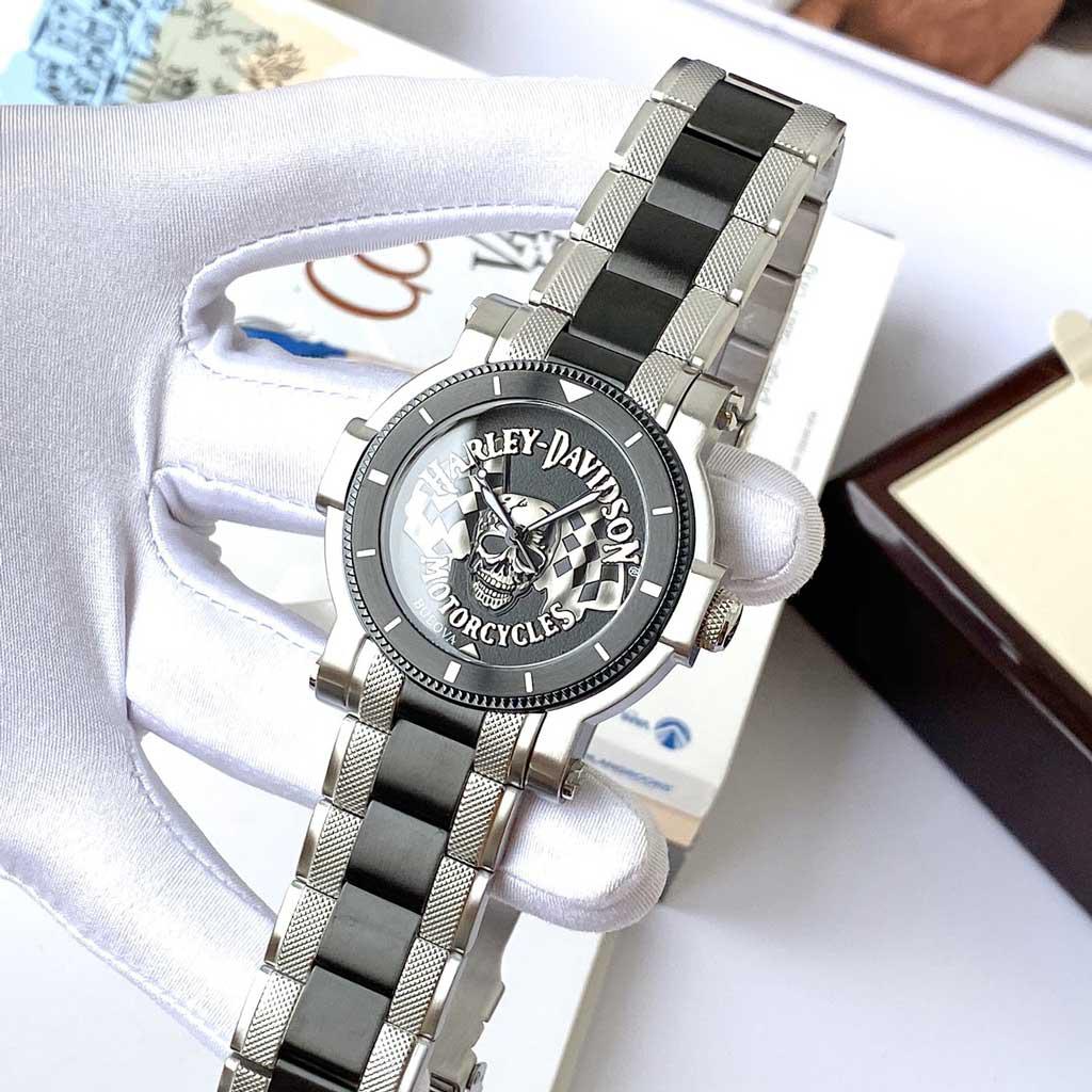 - Phiên bản hiếm và độc đáo của Bulova kết hợp với hãng xe Harley Davidson với thiết kế số 1 ở dial cực độc