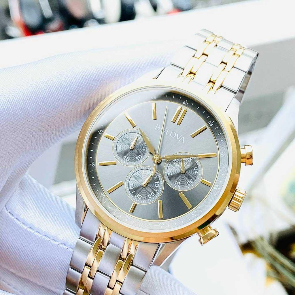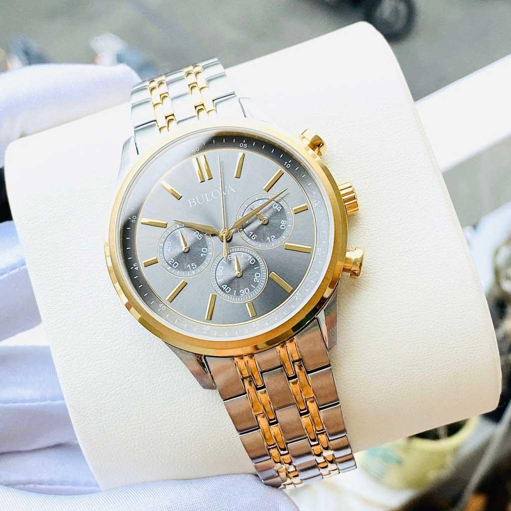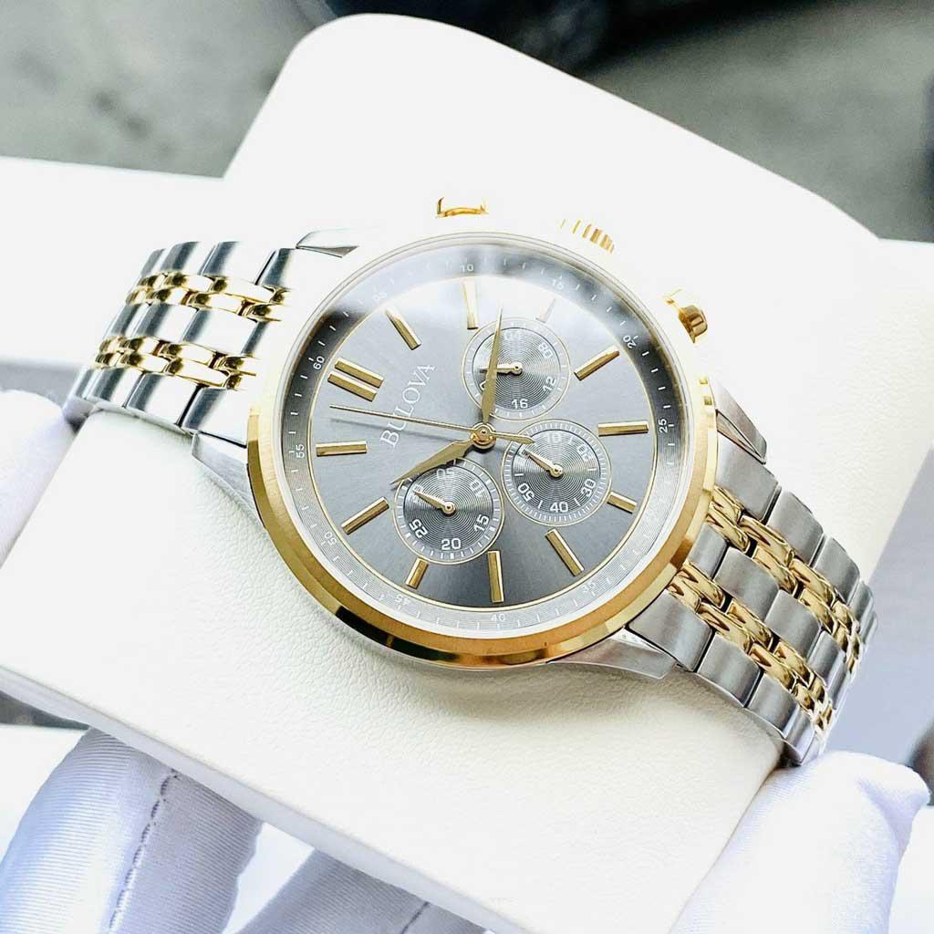 - Đồng hồ nam Bulova Men's Quartz Chronograph Two-Tone Grey Dial 42mm Watch 98A215.