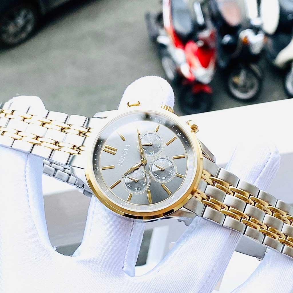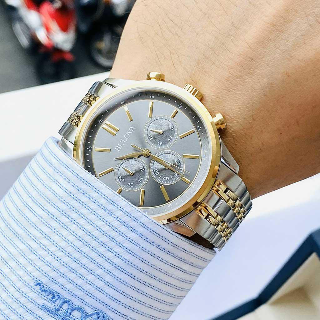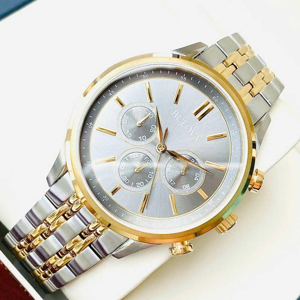- Đồng hồ nam Bulova Men's Quartz Chronograph Two-Tone Grey Dial 42mm Watch 98A215.