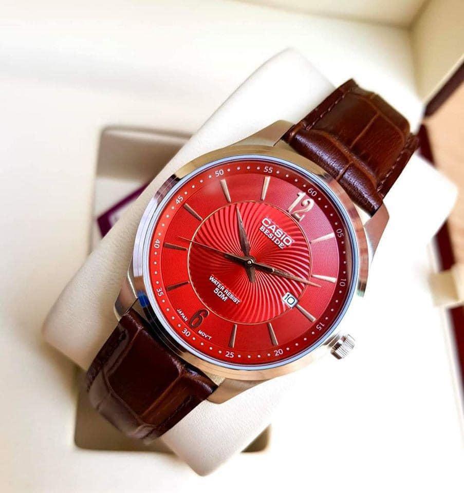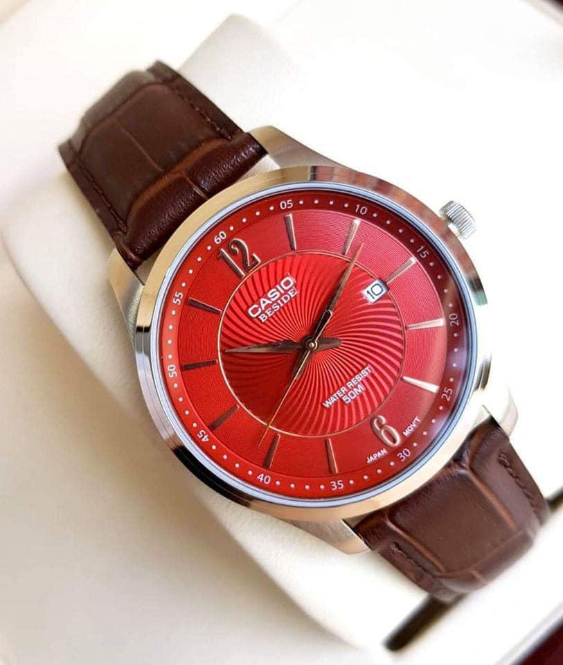 Casio Japan BEM BESIDE #BEM-151L-4AVDF phong cách cổ điển với tone màu đỏ đầy ấn tượng, mặt số vân xoắn ốc là điểm nhấn, dây da nâu cao cấp. sang trọng lịch lãm. Đồng Hồ Nam Casio Beside BEM-151L-4AVDF Chính Hãng Thông số máy: -Đường kính: 39mm - Máy: Quartz ( Pin ) - Kính: Kính cứng - Niềng: thép không gỉ 316L - Dây: Da chính hãng cao cấp - Chống nước: 50m Đồng Hồ Nam Casio Beside BEM-151L-4AVDF Chính Hãng 2 Đồng Hồ Nam Casio Beside BEM-151L-4AVDF Chính Hãng 3 Đồng Hồ Nam Casio Beside BEM-151L-4AVDF Chính Hãng 4