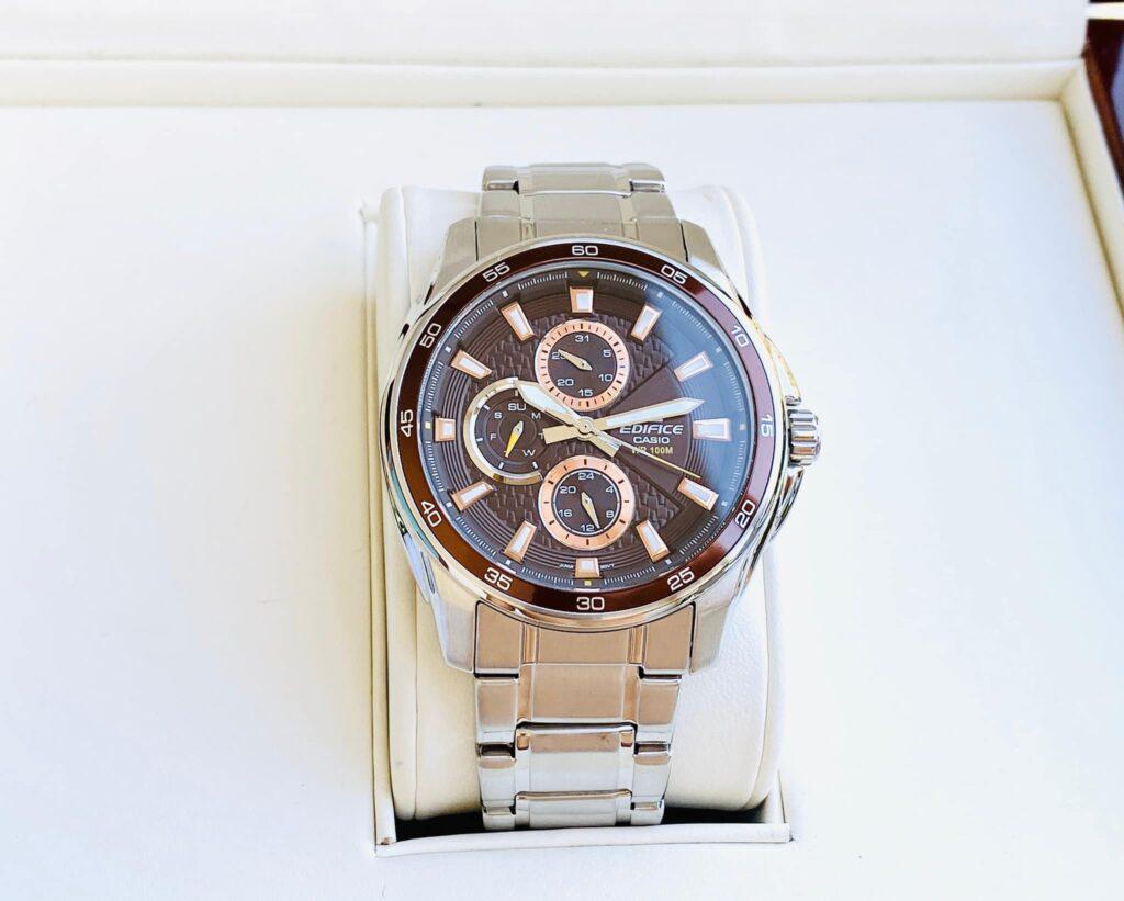 Màu nâu sang trọng và lịch lãm cho chàng thêm lôi cuốn, hãy là người đàn ông ga lăng, quyền quý và thành đạt trong mắt cô ấy. Chiếc đồng hồ Casio EF-334D-5AVDF chính hãng Casio Nhật bản sẽ cùng bạn khẳng định cá tính, đẳng cấp của chính bạn.
