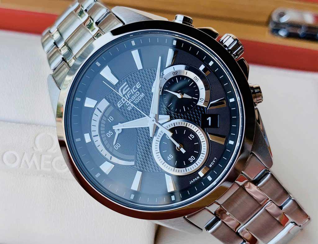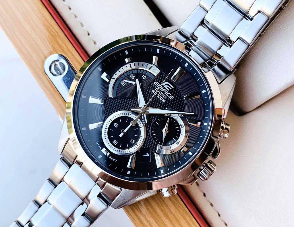 Tinh tế trong cách thể hiện cùng cách lựa chọn phối hợp màu sắc ấn tượng thú vị đã khẳng định thêm sự sang trọng đẳng cấp của chiếc đồng cũng như cho người đeo chúng. Mặt đồng hồ Casio nhiều lớp phân tầng tạo chiều sâu cũng như nét tinh tế cho người sử dụng. Phần vạch chỉ giờ và kim có dạ quang cao cấp, đồng hồ Edifice sang trọng mạnh mẽ tạo sự nổi bật khi đeo được mạ vàng hồng.