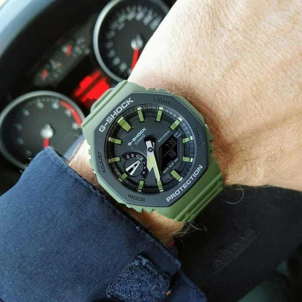 - Gshock GA-2110SU-3A phối xanh quân đội khỏe khoắn, lên tay đậm chất lính luôn ạ