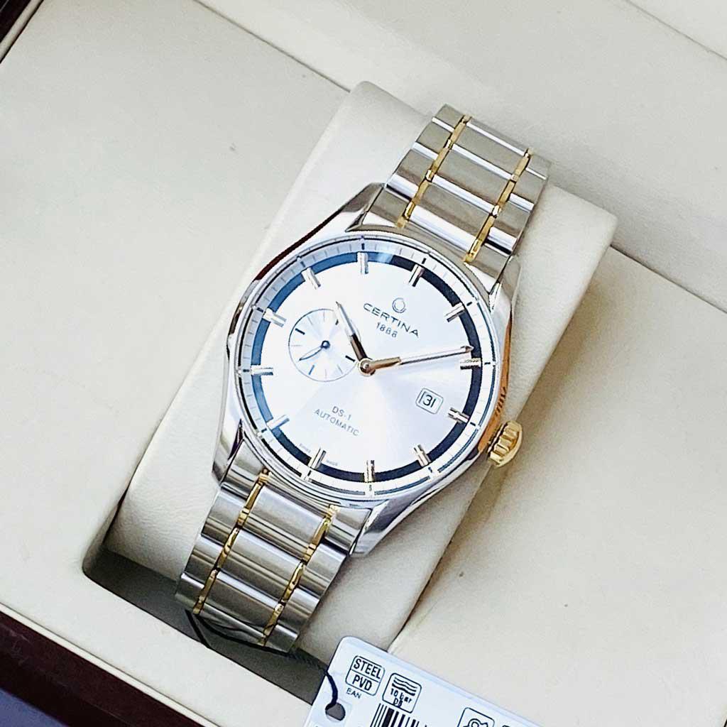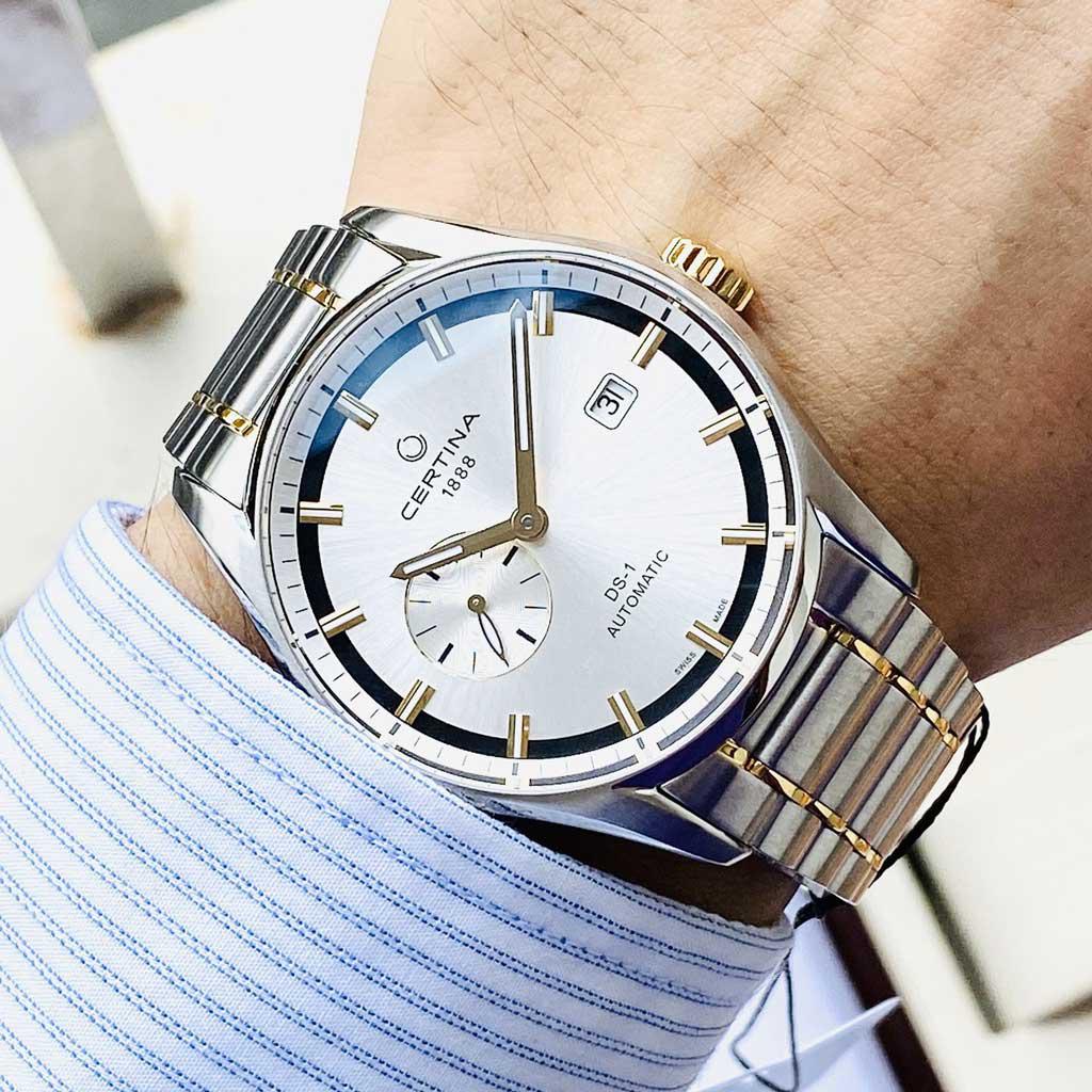 Certina DS 1 - Small Second Stainless Steel Two-Tone Mens Automatic C006.428.22.031.00 Thiết kế đơn giản và nam tính. Sử dụng công nghệ Double Security chống sốc từ Certina mang đến 1 chiếc đồng hồ bền chắc đúng nghĩa giúp anh em thoải mái hoạt động.