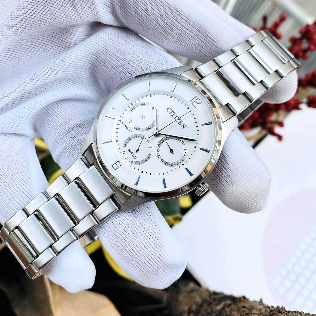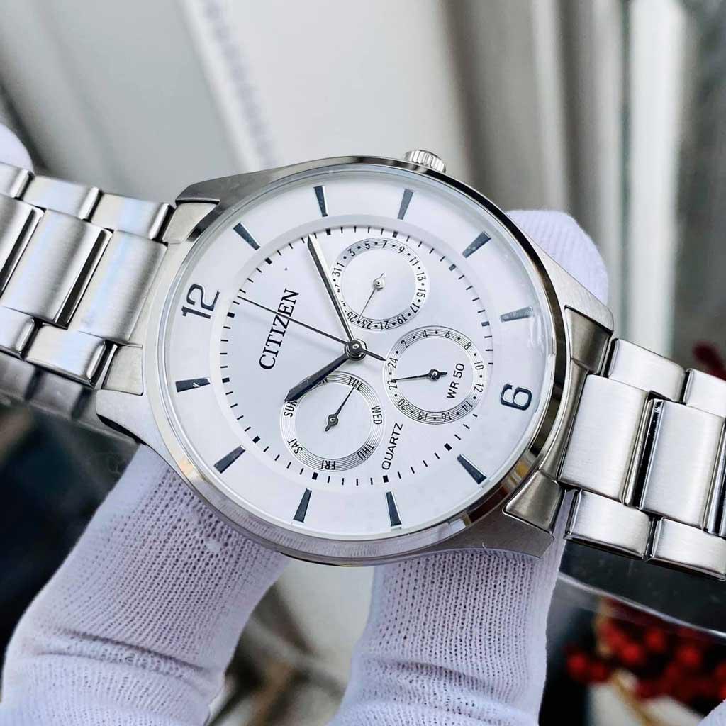 Đồng hồ nam Citizen AG8351-86A nổi bật đồng hồ 6 kim và các chức năng lịch ngày với thiết kế độc đáo phân ra 3 ô riêng biệt mang đậm nét cá tính trên nền mặt số tông màu trắng cuốn hút.