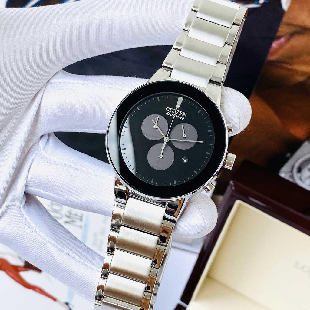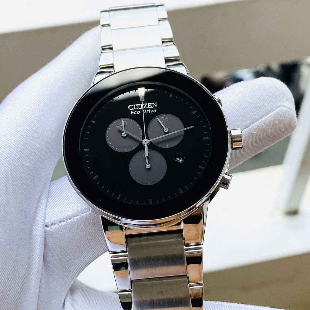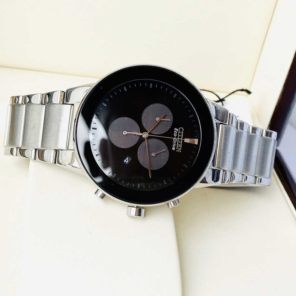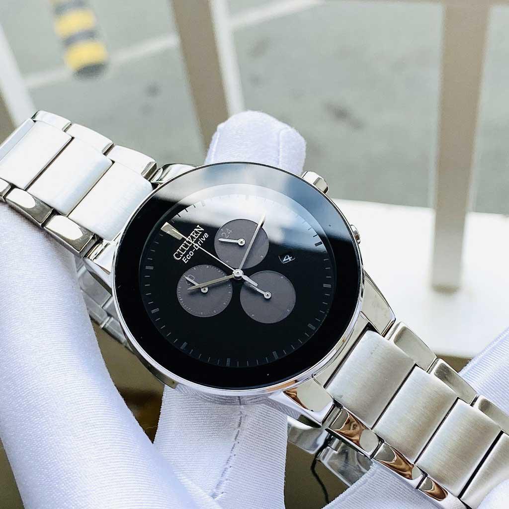 - Citizen AT2240-51E phong cách soái ca trên nền mặt số tông màu đen mạnh mẽ và trắng cuốn hút