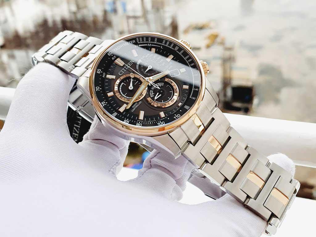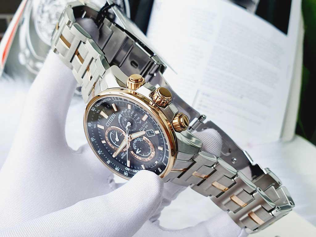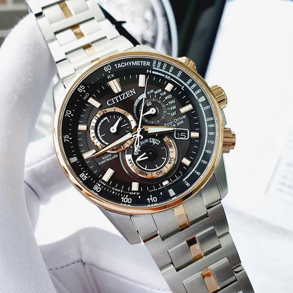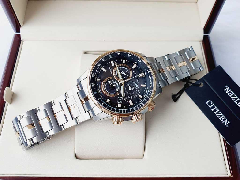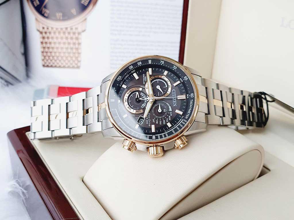 Thiết kế thể thao kết hợp với độ chính xác vượt trội , Bộ sưu tập CITIZEN Perpetual Chrono AT, hay PCAT, đồng bộ với đồng hồ nguyên tử cho độ chính xác cực cao. Đồng hồ bấm giờ nguyên tử được cung cấp bởi bất kỳ ánh sáng nào với Công nghệ Eco-Drive. Vỏ và vòng đeo tay bằng thép không gỉ hai tông màu với mặt số màu xám, đồng hồ bấm giờ, lịch vạn niên, thời gian 12/24 giờ, báo thức, dự trữ năng lượng, tachymeter, ngày và ngày.