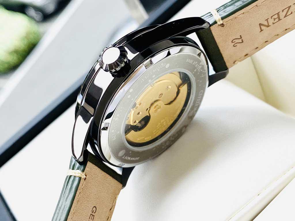 Những nhịp đập vững chãi của bộ máy Caliber 8213 hiện đại. Kim rốn góc 5h độc đáo - mới lạ, dây da xanh cuốn hút, mềm mại. Trữ cót lên đến 40h