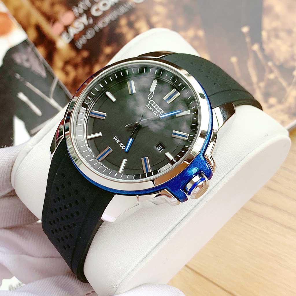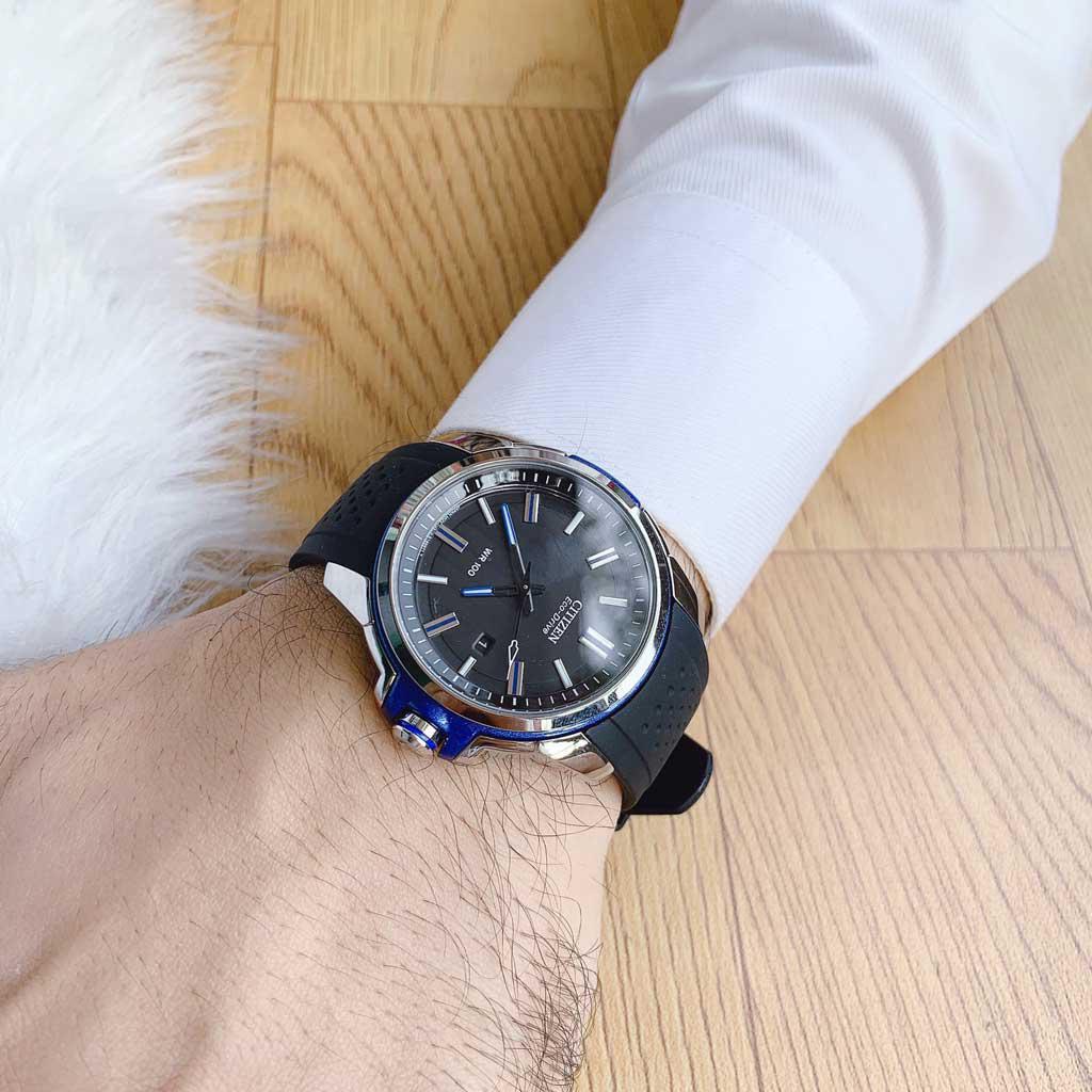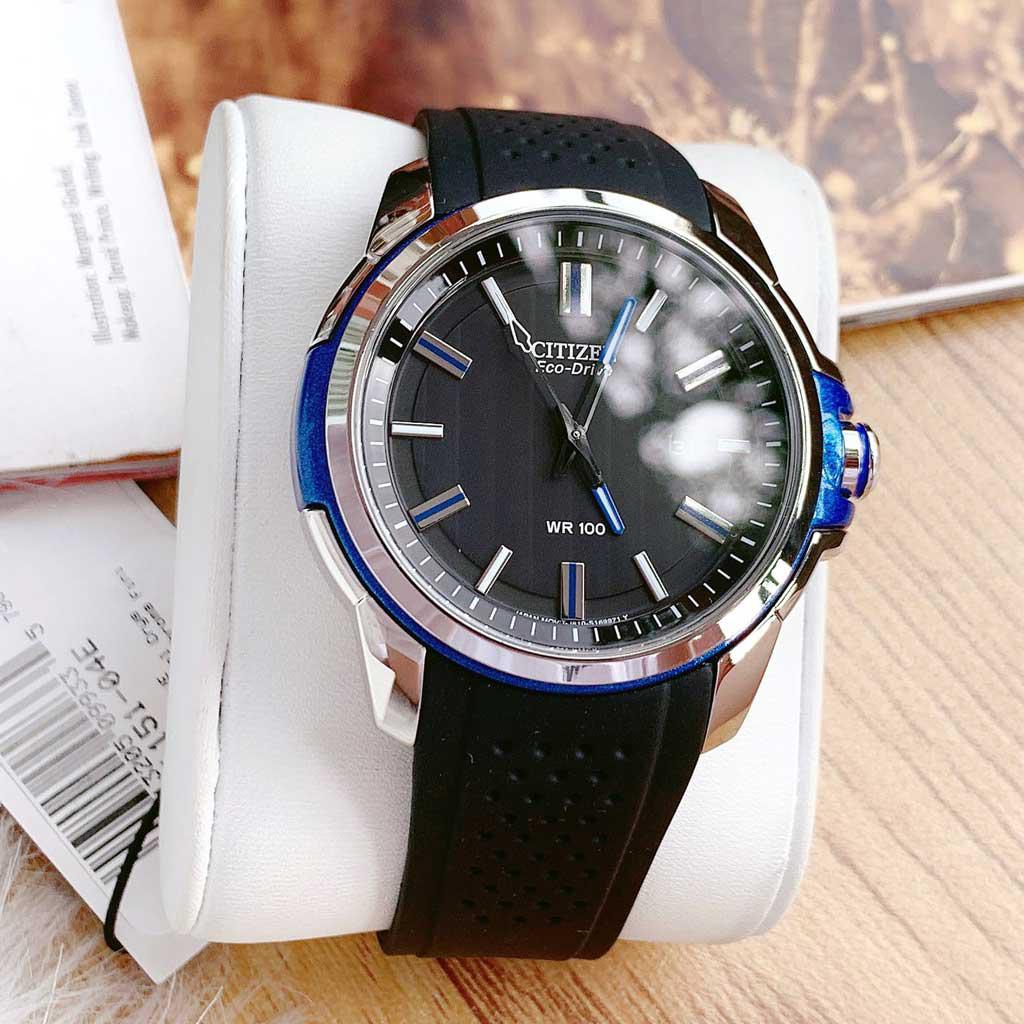 Citizen AW1151-04E Với thiết kế mang đậm tính thể thao, trang bị dây cao su giúp người dùng có thể vận động thoải thích mà không lo về mồ hôi. – Size: 44mm – Độ dày: 12mm – Máy: Eco-Drive J810 độc quyền Citizen – Mặt kính: Mineral Crystal – Chất liệu vỏ: Thép không gỉ 316L – Chất liệu dây: Silicon đen bền bĩ – Lịch ngày góc 3h tiện dụng – Chống nước: 100m