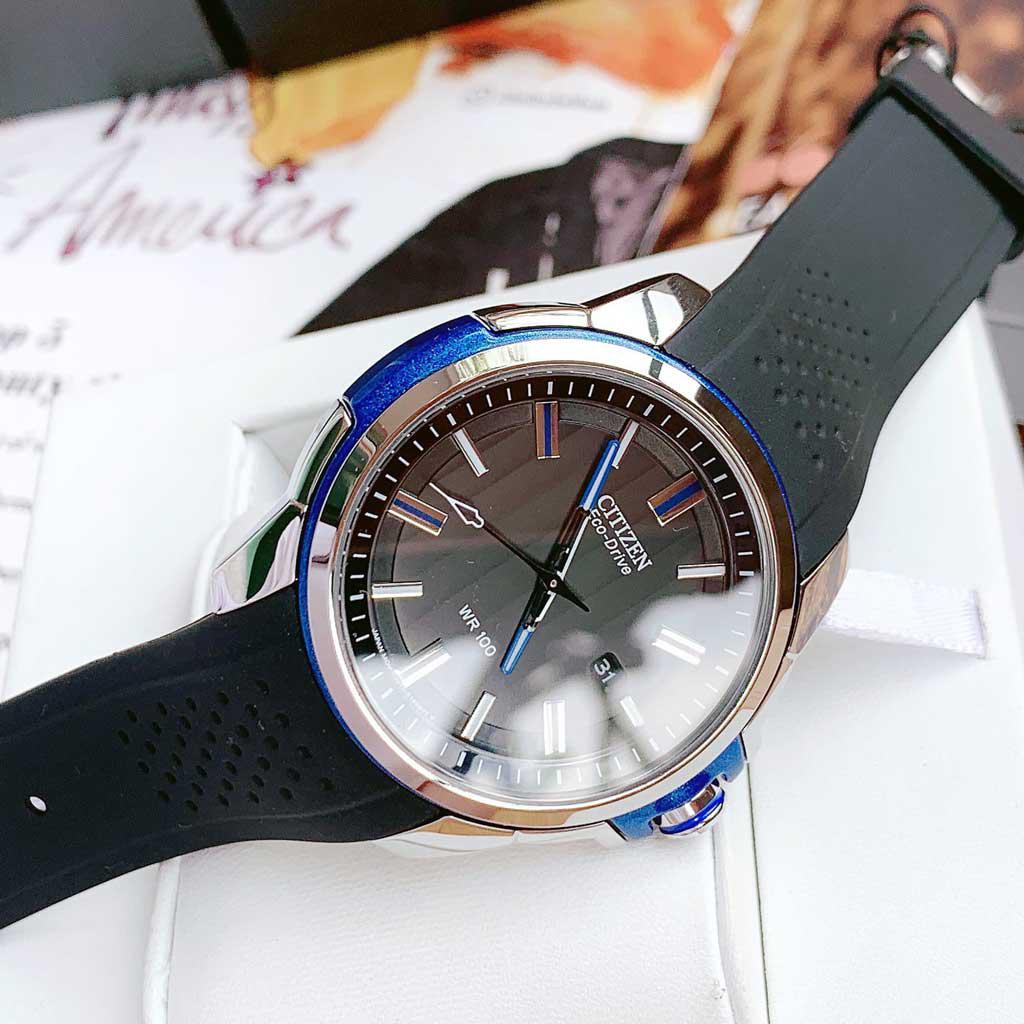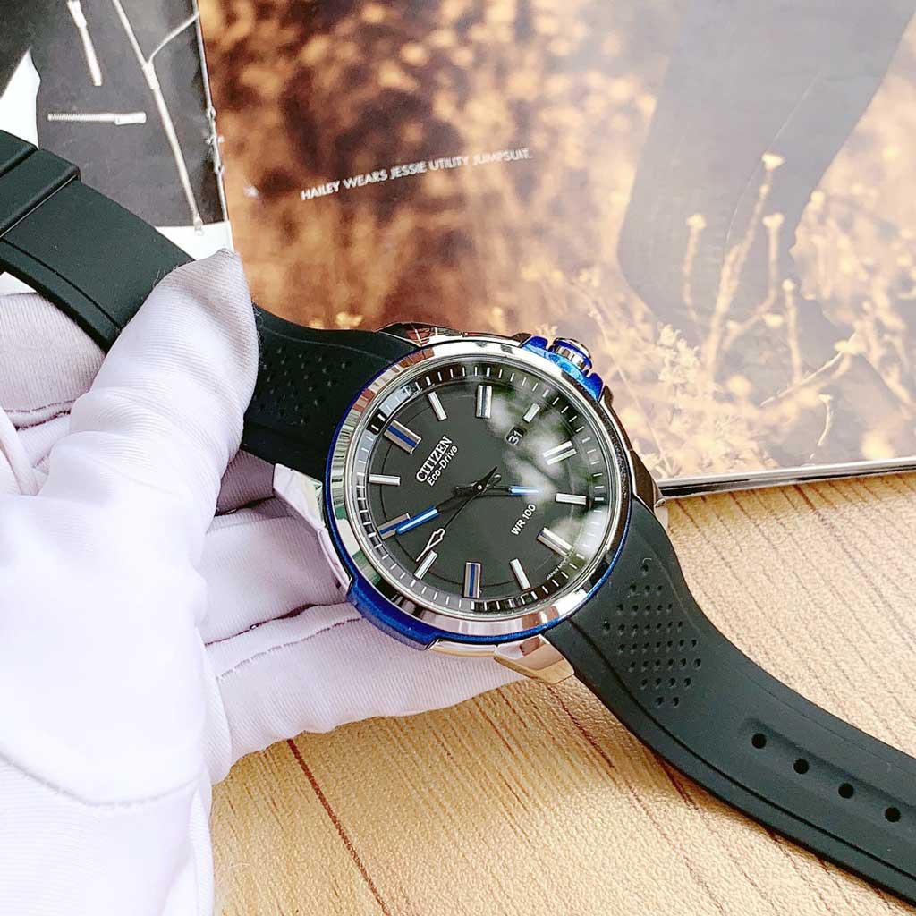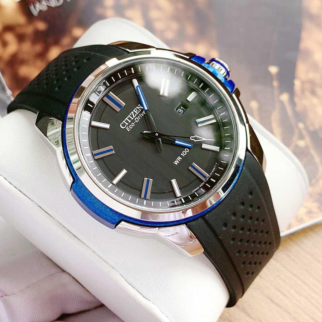 Citizen AW1151-04E Với thiết kế mang đậm tính thể thao, trang bị dây cao su giúp người dùng có thể vận động thoải thích mà không lo về mồ hôi. – Size: 44mm – Độ dày: 12mm – Máy: Eco-Drive J810 độc quyền Citizen – Mặt kính: Mineral Crystal – Chất liệu vỏ: Thép không gỉ 316L – Chất liệu dây: Silicon đen bền bĩ – Lịch ngày góc 3h tiện dụng – Chống nước: 100m
