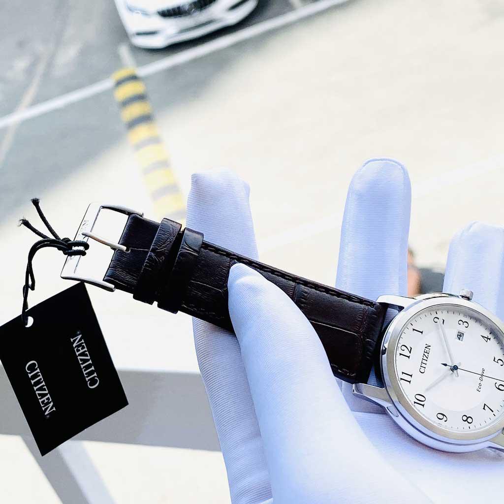 Khác với sự phô trương về kích thước của mặt số, Citizen AW1211-12A sở hữu bộ dây làm từ da mềm mại, lại còn mang màu đen nhẹ nhàng, trầm tĩnh. Dây được làm từ thớ da động vật đã trải qua quá trình thuộc, kiểm định kỹ càng trước khi lắp vào đồng hồ để đeo lên tay của từng quý khách hàng. Dây da trên đồng hồ Citizen AW1211-12A là chất liệu dây da chính hãng cao cấp đã trải qua quá trình tuyển chọn gắt gao khi ứng dụng lên đồng hồ AW1211-12A. Ngoài ra, dây da nâu còn được thiết kế những đường vân cá sấu đẹp mắt không chỉ mang đến sự thời trang cho anh chàng AW1211-12A mà còn là sự nhẹ nhàng và êm ái trên cổ tay áo các anh chàng bảnh bao. Đồng hồ dây da tuy không bền như đồng hồ dây kim loại nhưng cũng sẵn sàng chiếm lĩnh trái tim người yêu cỗ máy thời gian vì một số đặc tính sau: ✔ Dai và có vẻ cứng cáp khi nhìn từ bên ngoài nhưng mềm mại và yêu chiều làn da chúng ta khi đeo vào. ✔ Có nhiều màu sắc lựa chọn, nhìn kiểu gì cũng không quá cứng cáp gây sự khó gần, đỉnh đạc, lịch lãm nhưng vẫn rất hòa đồng, đáng mến. ✔ Dễ kết hợp trang phục một cách thời trang nhất, giúp người sở hữu ít khi bị lỗi mốt so với số đông.
