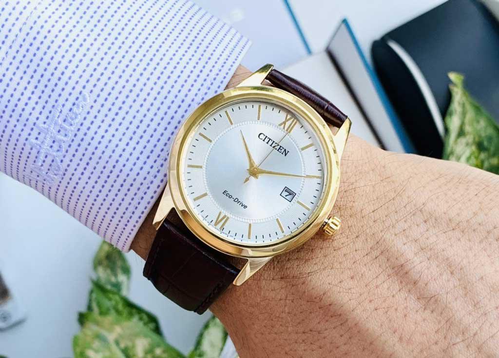 Bộ máy Eco-Drive     Eco-Drive là một công nghệ độc quyền được sản xuất bởi chính thương hiệu Citizen. Eco-Drive cho phép người dùng có thể an tâm nạp năng lượng bằng bất kỳ nguồn ánh sáng nào từ ánh nắng mặt trời đến cả ánh đèn nến.   Thời gian hoạt động của máy Eco-Drive có thể lên đến 6 tháng nếu bạn sạc đầy đủ. Tấm Panel hút năng lượng ánh sáng không hề chứa thủy ngân chính vì vậy mà người dùng còn có thể an tâm góp phần bảo vệ môi trường.   Để hạn chế tình trạng pin đồng hồ bị ảnh hưởng tiêu cực, chẳng hạn như bị chai, Citizen đã quyết định trang bị tính năng cảnh báo thiếu hụt cũng như cảnh báo năng lượng đã đầy, phái mạnh nên lưu ý vấn đề này nhé để có thể góp phần giữ cho đồng hồ luôn trong tình trạng hoàn hảo nhất.   AW1232-12A Là chiếc đồng hồ sử dụng bộ máy Eco – Drive với công nghệ tiên tiến nhất thế giới và độc quyền từ Citizen. Đây là loại máy hoạt động dựa trên năng lượng được chuyển hóa từ ánh sáng từ bất kỳ nguồn sáng này. Điều này cho phép nó dự trữ năng lượng rất tốt. Khi được sạc đầy bằng ánh sáng, một chiếc đồng hồ chạy máy Eco – Drive có thể chạy được từ 6 tháng đến 5 năm mới phải sạc lần tiếp theo. Đặc biệt pin dự trữ năng lượng củ bộ máy này hoàn toàn không chúa thủy ngân và rất thân thiện với môi trường.   AW1232-12A Mang nét đẹp rạng ngời, sự bền chắc tối đa đến từ lớp vỏ thép không gì 316L, mạ vàng công nghệ PVD. Đây là sự kết hợp hoàn hảo của 2 trong số những vật liệu tốt nhất thế giới hiện nay. Thép không gỉ 316L mang đến sự bền chắc tuyệt đối, khả năng chống va đập hoàn hảo cho sản phẩm. Mạ PVD là công nghệ mạ tiên tiến nhất trên thế giới hiện nay với những ưu điể vượt trội về vẻ đẹp và bền đẹp như mới trong thời gian rất lâu. Vỏ thép không gỉ 316L, mạ vàng PVD giúp sản phẩm sang trọng, đẳng cấp và có độ bền hoàn hảo.   AW1232-12A có Mặt màu trắng, Số vạch/Số la mã     Chất lượng Nhật Bản trên Citizen AW1232-12A     Bộ máy đồng hồ được sản xuất bởi chính Miyota. Cho những ai chưa biết, Miyota chính là một trong 3 nhà sản xuất bộ máy hàng đầu trên thị trường hiện nay.   Miyota cung cấp đủ linh kiện, lắp ráp, công nghệ và tất cả đều vượt qua sự kiểm tra nghiêm ngặt của các cơ quan có thẩm quyền tại Nhật Bản.   Chính vì thế mà phái mạnh hoàn toàn có thể an tâm vào khả năng vận hành bền bỉ và cực kỳ bền theo thời gian của chiếc đồng hồ Nhật Bản đạt chuẩn Japan Movt này.   Lưu ý nhỏ là tuy sản phẩm có độ chịu lực tốt, vận hành khá tốt theo thời gian nhưng phái mạnh vẫn nên hạn chế để đồng bị bị ảnh hưởng tiêu cực từ các ngoại lực bên ngoài nhé. Song song đó, nếu bộ máy có vấn đề hãy ngay lập tức đến các Showroom để bảo trì tránh để ảnh hưởng đến các linh kiện bên trong.