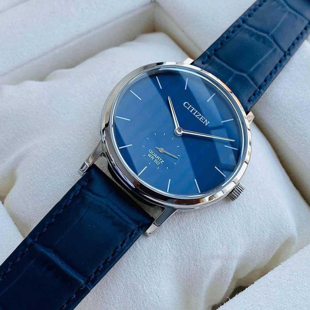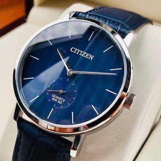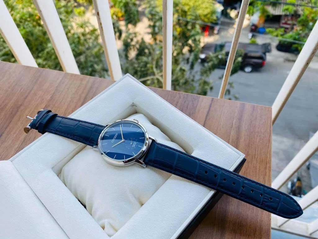 Không phải là tông màu đen cũng như không phải là sắc nâu trầm mà chúng ta vẫn thường thấy trên những chiếc đồng hồ thời trang, với phiên bản Citizen BE9170-05L, đội ngũ sản xuất đã quyết định lựa chọn sắc xanh cho thiết kế dây da này.   Dây da trên Citizen BE9170-05L là dây da chính hãng nên về độ bền, độ ổn định theo thời gian cũng được nâng cấp. Trọng lượng của dây da khá gọn nhẹ, thích hợp khi bạn làm văn phòng, đánh máy, dây da sẽ không gây khó chịu trong quá trình bạn sử dụng sản phẩm.   Nếu chẳng may, sau một thời gian dài sử dụng, phái mạnh không còn yêu thích tông màu xanh này, bạn cũng có thể dễ dàng đổi sang một dây đeo khác. Điều này là không hề dễ dàng nếu bạn sử dụng đồng hồ dây kim loại.