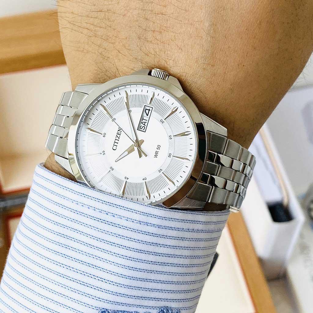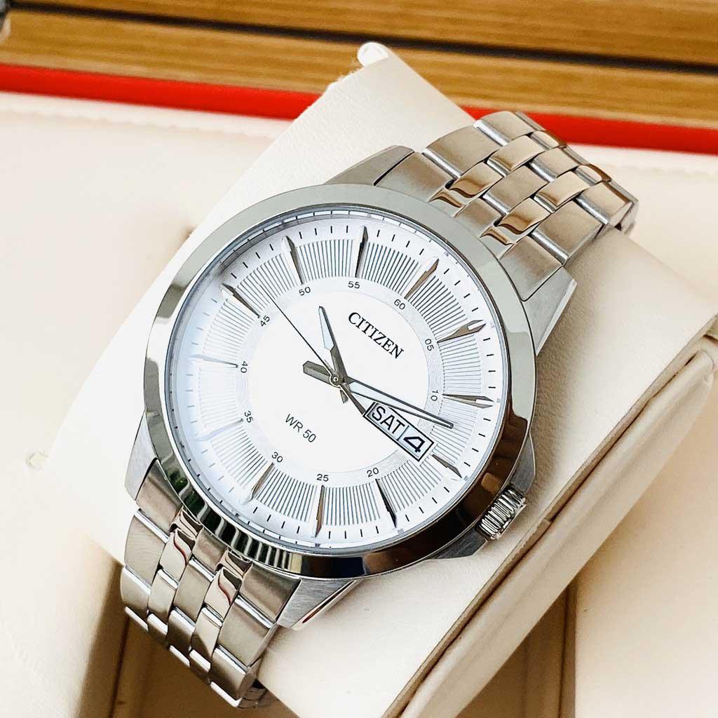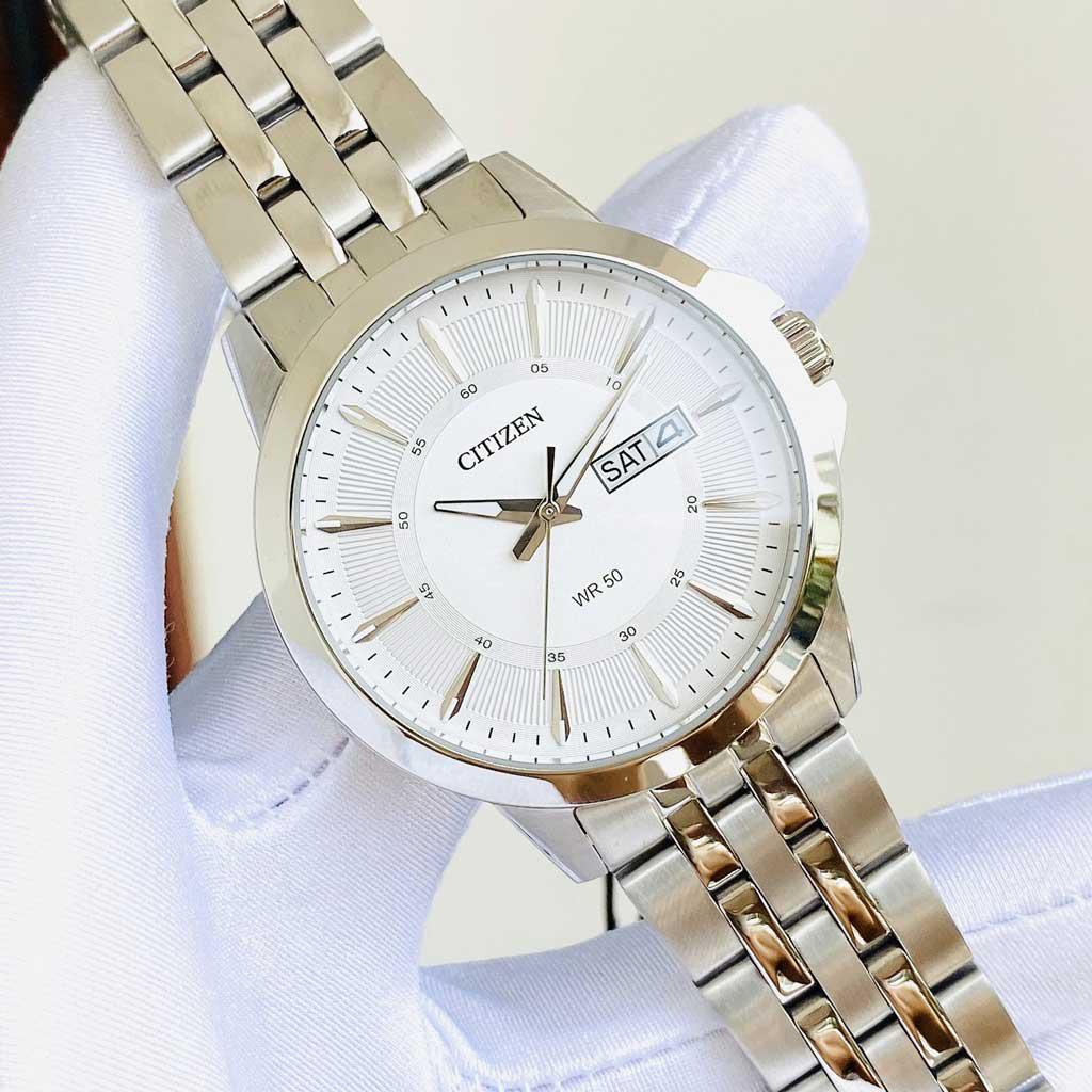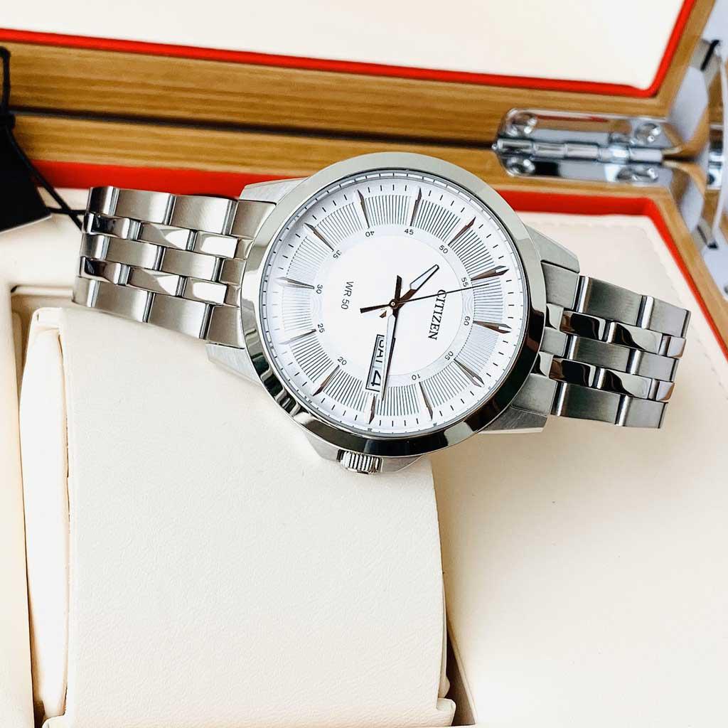 - Đồng hồ CITIZEN BF2011-51A nổi bật với mặt đồng hồ màu trắng thanh lịch.