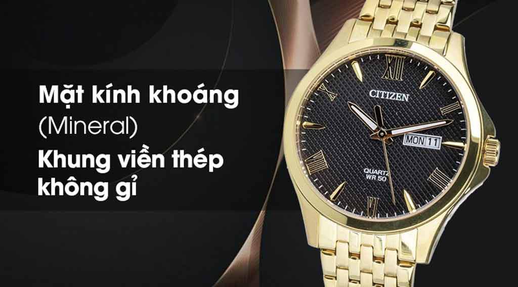 Lớp vỏ bên ngoài chắc chắn và cứng cáp - Chiếc đồng hồ Citizen BF2022-55H nam này có mặt kính trong suốt, chịu lực tốt, dễ dàng đánh bóng, làm mới khi bị trầy xước nhẹ. - Khung viền bền bỉ, chống oxi hóa, hạn chế hư hỏng khi bị tác động hoặc khi rơi ở độ cao vừa phải.