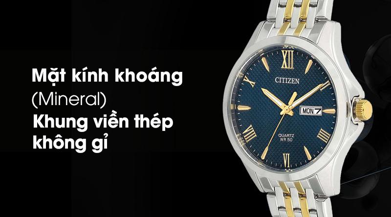 Lớp vỏ bên ngoài chắc chắn và cứng cáp   - Chiếc đồng hồ Citizen nam này có mặt kính trong suốt, chịu lực tốt, dễ dàng đánh bóng, làm mới khi bị trầy xước nhẹ.   - Khung viền bền bỉ, chống oxi hóa, hạn chế hư hỏng khi bị tác động hoặc khi rơi ở độ cao vừa phải.