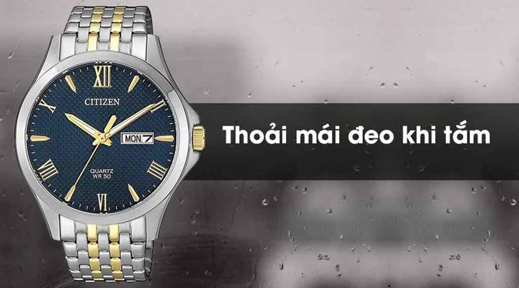 Hệ số chống nước 5 ATM, bạn yên tâm đeo đồng hồ khi đi mưa và tắm, không mang khi bơi, lặn