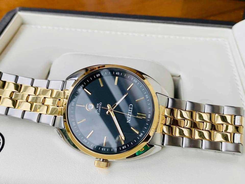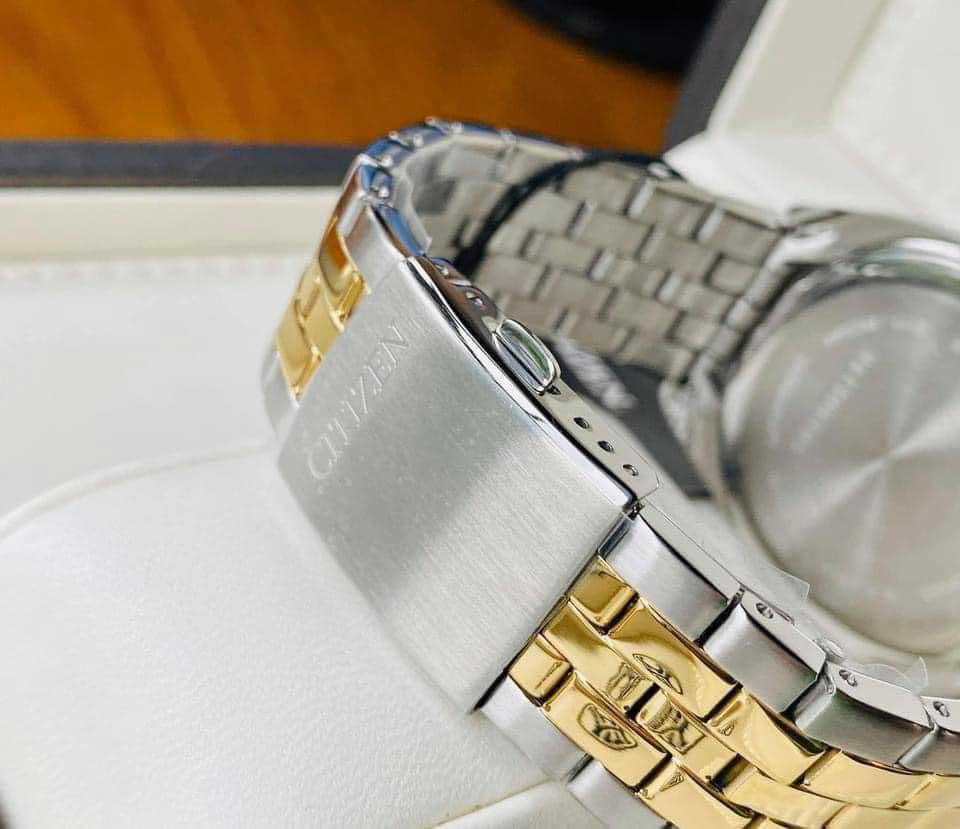 Mẫu Citizen BI5094-59E phiên bản dây đeo demi vàng thời trang sang trọng phối cùng với thiết kế đơn giản chức năng 3 kim trên nền mặt số đen size 42mm. Đồng hồ Citizen BI5094-59E mẫu nam xuất xứ từ Nhật Bản, sử dụng bộ máy pin hoạt động chính xác và bền bỉ. Mặt kính khoáng cứng chịu lực tốt. Dây và vỏ làm từ chất liệu thép không gỉ sử dụng công nghệ mạ PVD vàng cổ điển. Khả năng chống nước là 5atm có thể đi mưa và rửa tay. Phù hợp với các anh chàng công sở.    BI5094-59E là chiếc đồng hồ dành riêng cho nam giới thuộc bộ sưu tập Citizen Gents của hãng đồng hồ hàng đầu Nhật Bản  . Bộ sưu tập mang đến người dùng trải nghiệm tuyệt vời và chất lượng nhất ở kiểu dáng lịch lãm, phong cách với những đường nét thiết kế tạo nên dấu ấn riêng biệt, đẳng cấp và mạnh mẽ. Cùng với đó, bộ máy mạnh mẽ theo công nghệ Nhật Bản giúp sản phẩm luôn được khách hàng ưu chuộng và đánh giá cao.