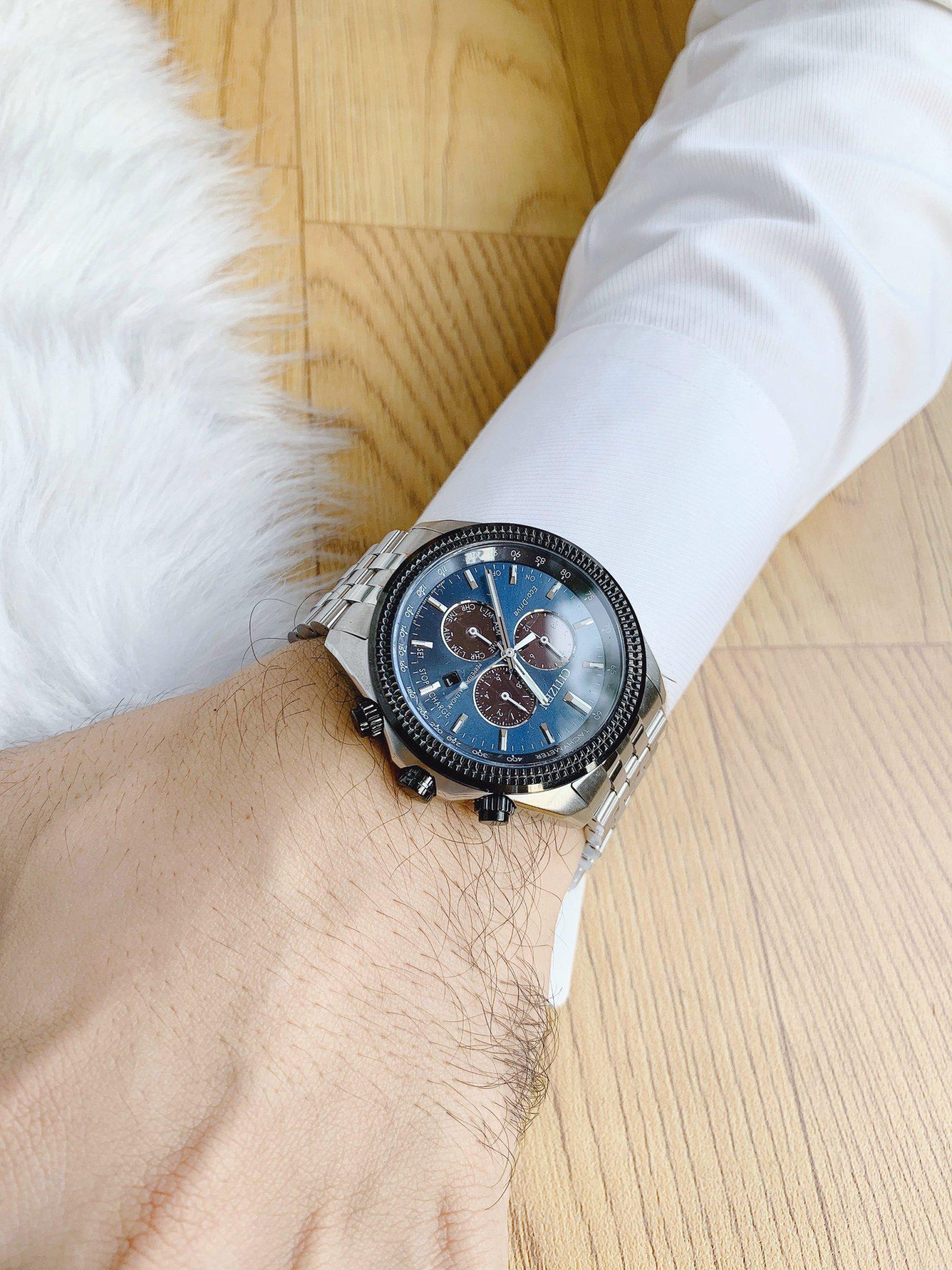 - Vỏ thép không gỉ với vòng thép không gỉ. Gờ có kết cấu màu đen cố định. Mặt số màu xanh lam với kim chỉ số màu bạc dạ quang và vạch chỉ giờ. Điểm đánh dấu phút. Các điểm đánh dấu Tachymeter xung quanh vành ngoài.