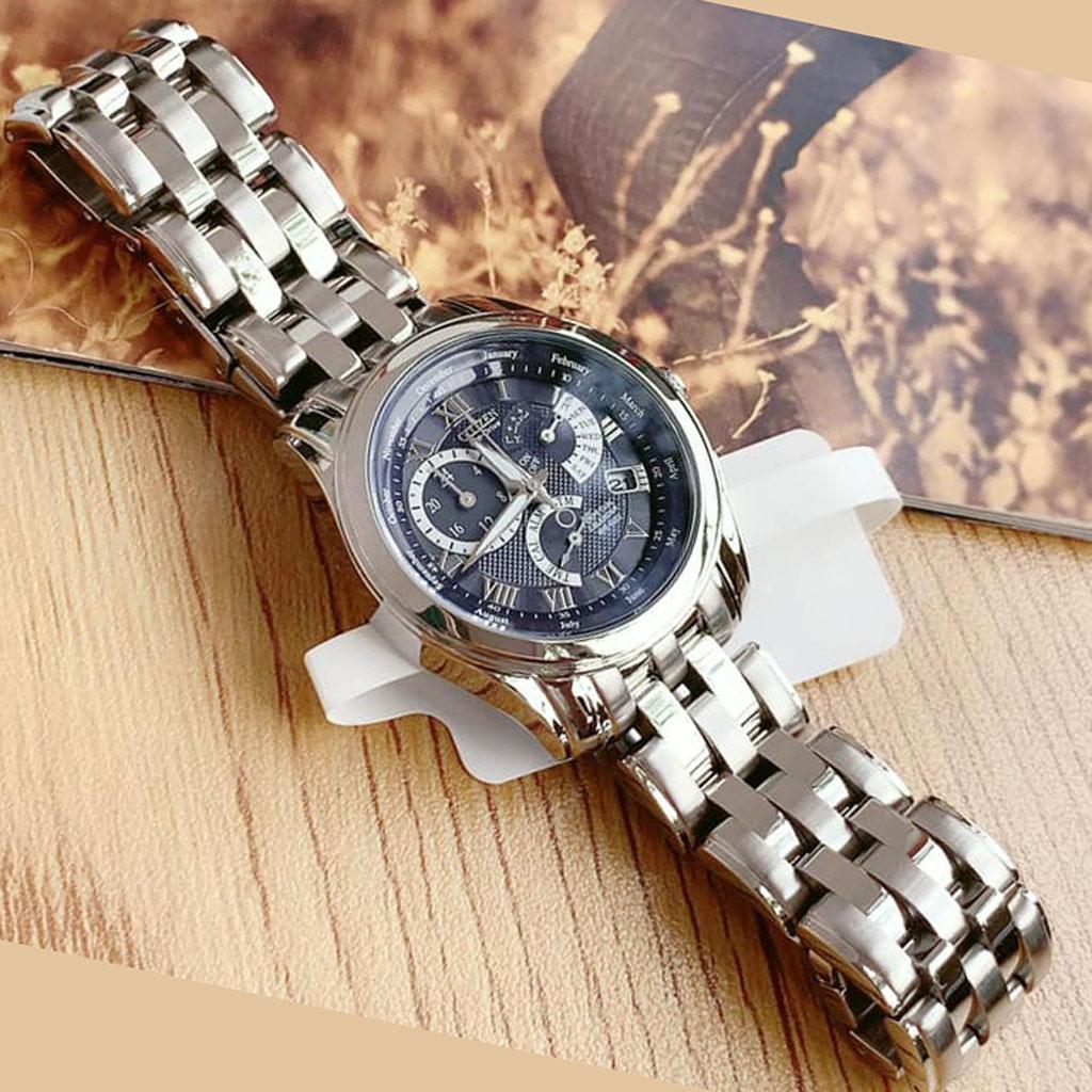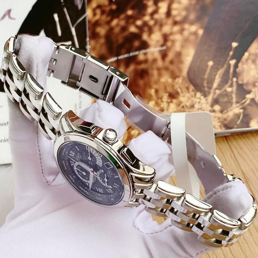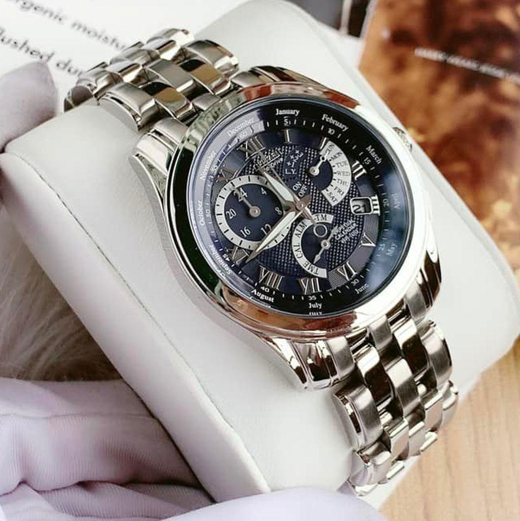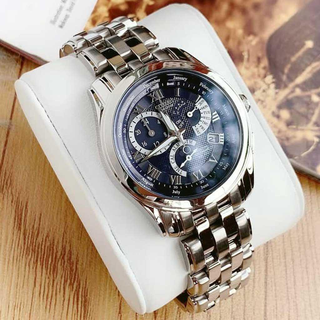 Citizen BL8000-54L thiết kế cực đẹp, mặt xanh đầy cuốn hút. Máy eco-drive năng lượng ánh sáng made in Japan. Lịch vạn niên Perpetual Calendar chế độ tự động chỉnh giờ múi giờ quốc tế ,chế độ báo thức, chịu nước 100m. Công nghệ Perpetual Calendar: Chỉnh lịch chuẩn đồng hồ sẽ luôn chỉnh ngày phù hợp từng tháng theo năm. Hiểu đơn giản bạn chỉnh lịch một lần và đồng hồ sẽ đúng lịch mãi mãi theo các năm. Đây là công nghệ cực cao cấp trong ngành đồng hồ.