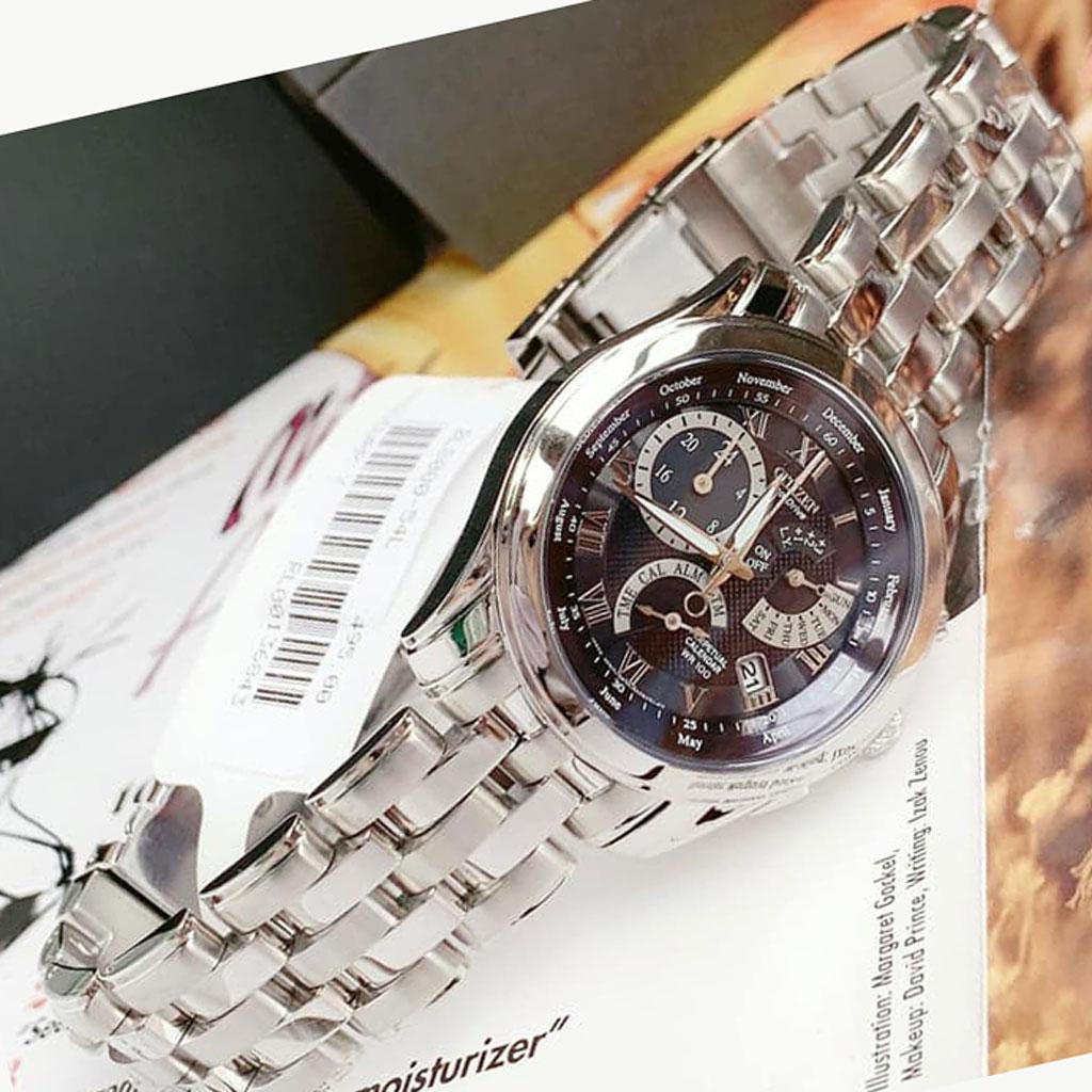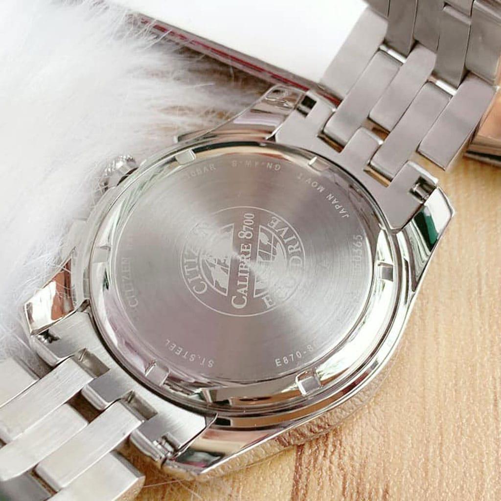 Dòng máy Citizen Eco – Drive là một công nghệ độc quyền của thương hiệu đồng hồ Citizen. Đặc điểm của công nghệ này là việc sử dụng năng lượng ánh sáng để dùng làm năng lượng duy trì cho đồng hồ với thời gian pin kéo dài trên 10 năm. Dòng đồng hồ Citizen mang tới sự đột phát ở công nghệ và còn rất thân thiện với môi trường. Với chức năng công nghệ này thì hiện nay chưa có một thương hiệu nào có thể đánh bại Citizen. Chiếc đồng hồ với 3 mặt đồng hồ phụ. Chúng được sắp xếp rất gọn gàng và tinh tế trên mặt đồng hồ. Giúp chúng ta có thể theo dõi thời gian mà không hề gây rối mắt. Cọc số La mã cũng giúp chúng ta quan sát dễ hơn. Ngay phía góc 4 giờ được thiết kế ngày để tiện kiểm soát ngày tháng.