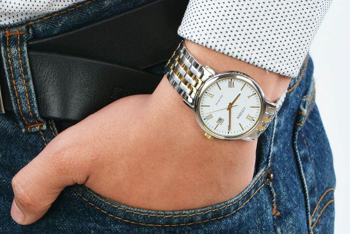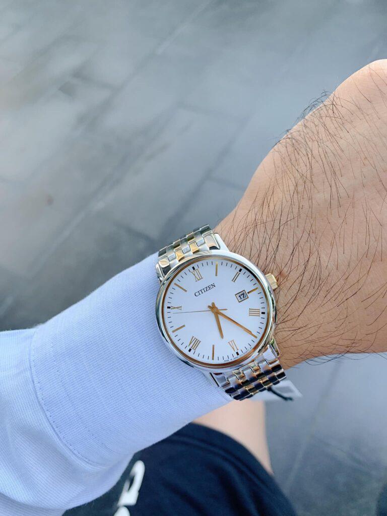 Nếu bạn là một chàng trai thường hay sử dụng đồng hồ như là một phụ kiện thời trang khi đi làm, đi gặp đối tác thì chắc chắn rằng, những chiếc đồng hồ dây kim loại sẽ là sự lựa chọn phù hợp nhất.   Sở dĩ, dây kim loại khá được yêu thích bởi nó có vẻ ngoài khá chững chạc, trưởng thành, lại còn mang đậm vẻ đẹp nam tính, khá phù hợp khi bạn sử dụng khi đi làm hoặc những sự kiện quan trọng.   Nhưng không chỉ là dây kim loại có phong cách đầy sang trọng, mạnh mẽ mà dây đeo trên Citizen BM6774-51A còn là dây demi với sự kết hợp giữa hai tông màu bạc và vàng, khá đẹp mắt.   Dây kim loại còn được đánh giá khá cao bởi nó không hề thấm nước, khá dễ sử dụng giúp bạn tránh được tình trạng hôi tay và còn khá bền theo thời gian.   Phái mạnh nên lưu ý một chút trong quá trình sử dụng đồng hồ Citizen BM6774-51A đó chính là nên hạn chế để dây đeo bị trầy, xước, thường xuyên lau và vệ sinh dây đeo bằng khăn mát. Phương pháp này có thể giúp sản phẩm bền hơn theo thời gian.