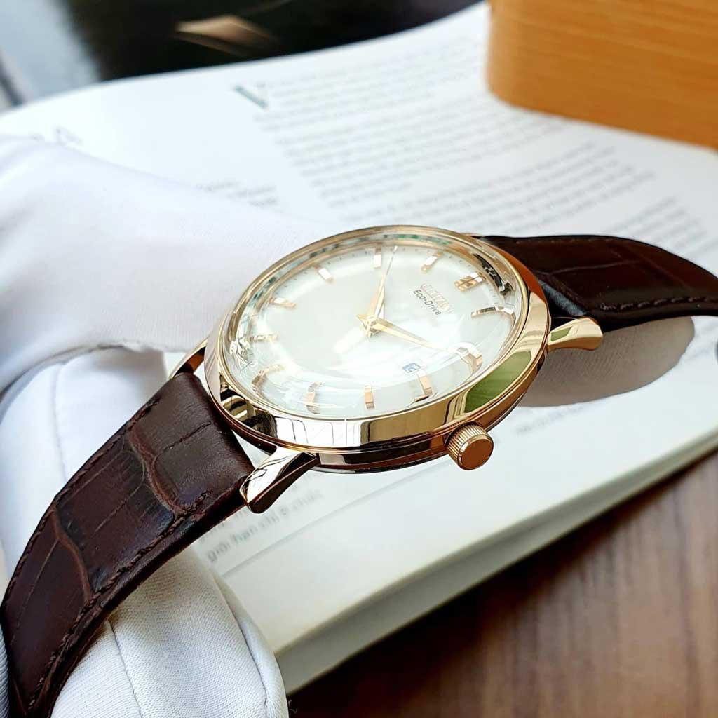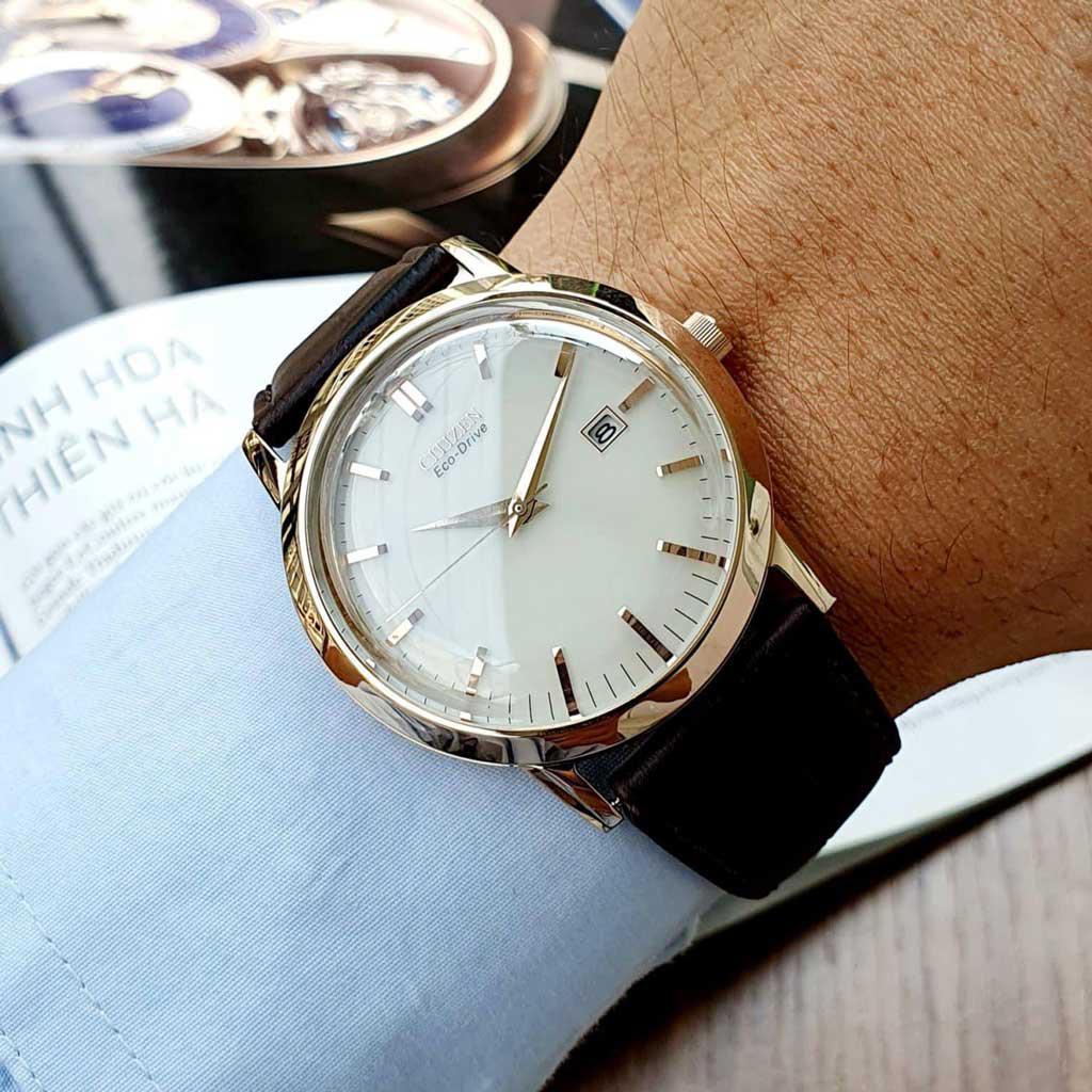 Citizen BM7193-07B một chiếc đồng hồ dây da khá cao cấp của Citizen. Sở hữu một mặt số tươi sáng với thiết kế màu trắng nổi bật và trẻ trung, kết hợp cùng mặt kính cong bo tròn sang trọng. Vành Bezel dát vàng bởi công nghệ PVD bền màu tôn lên vẻ đẳng cấp lịch lãm cho người đeo. Cùng với đó là một bộ máy mạnh mẽ hoạt động chính xác, ổn định.   Hòa trộn giữa sự hiện đại và nét cổ kính trong trường phái thiết kế, tạo nên một mẫu đồng hồ Citizen BM7193-07B sang trọng và đẳng cấp. Với một kiểu dáng lịch lãm, tượng trưng cho nét hào hoa của các chàng trai, đem tới sức hấp dẫn và sự quyến rũ rất riêng làm cho bạn trở nên khác biệt khi đeo em nó trên tay.