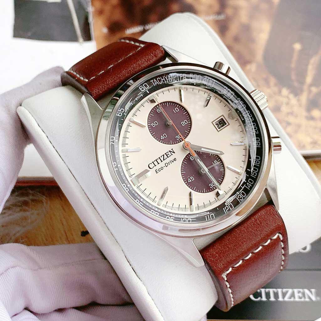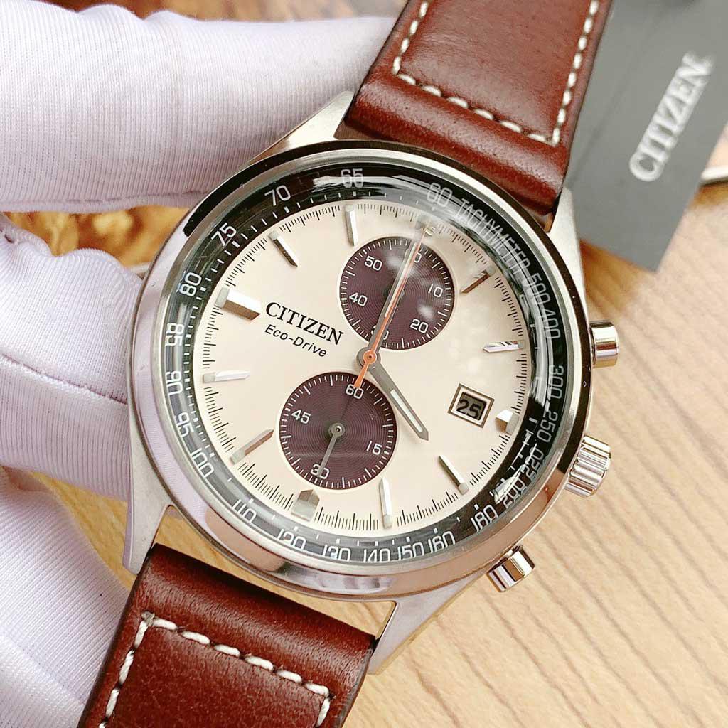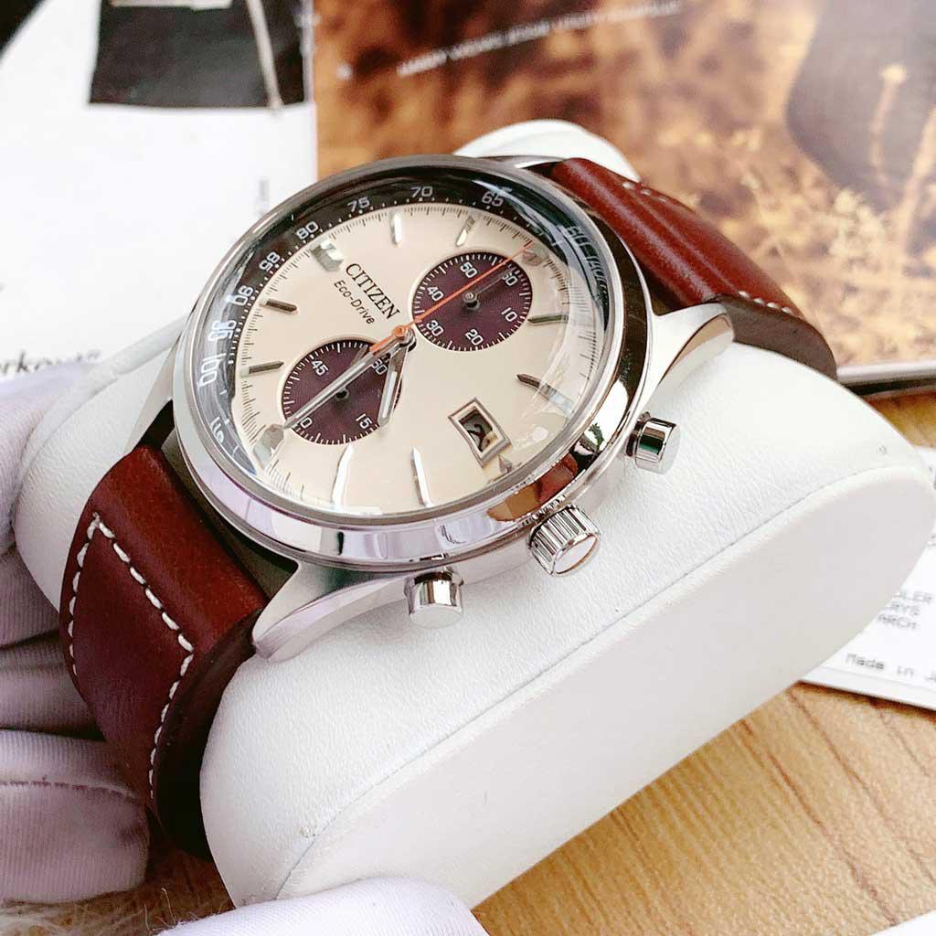 Citizen CA7020-07A. Thiết kế nam tính, mới lạ với dial màu be, dây da nâu lịch lãm!