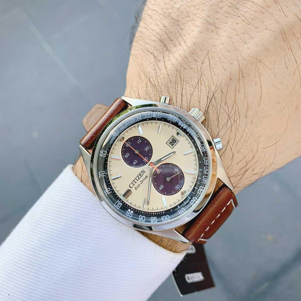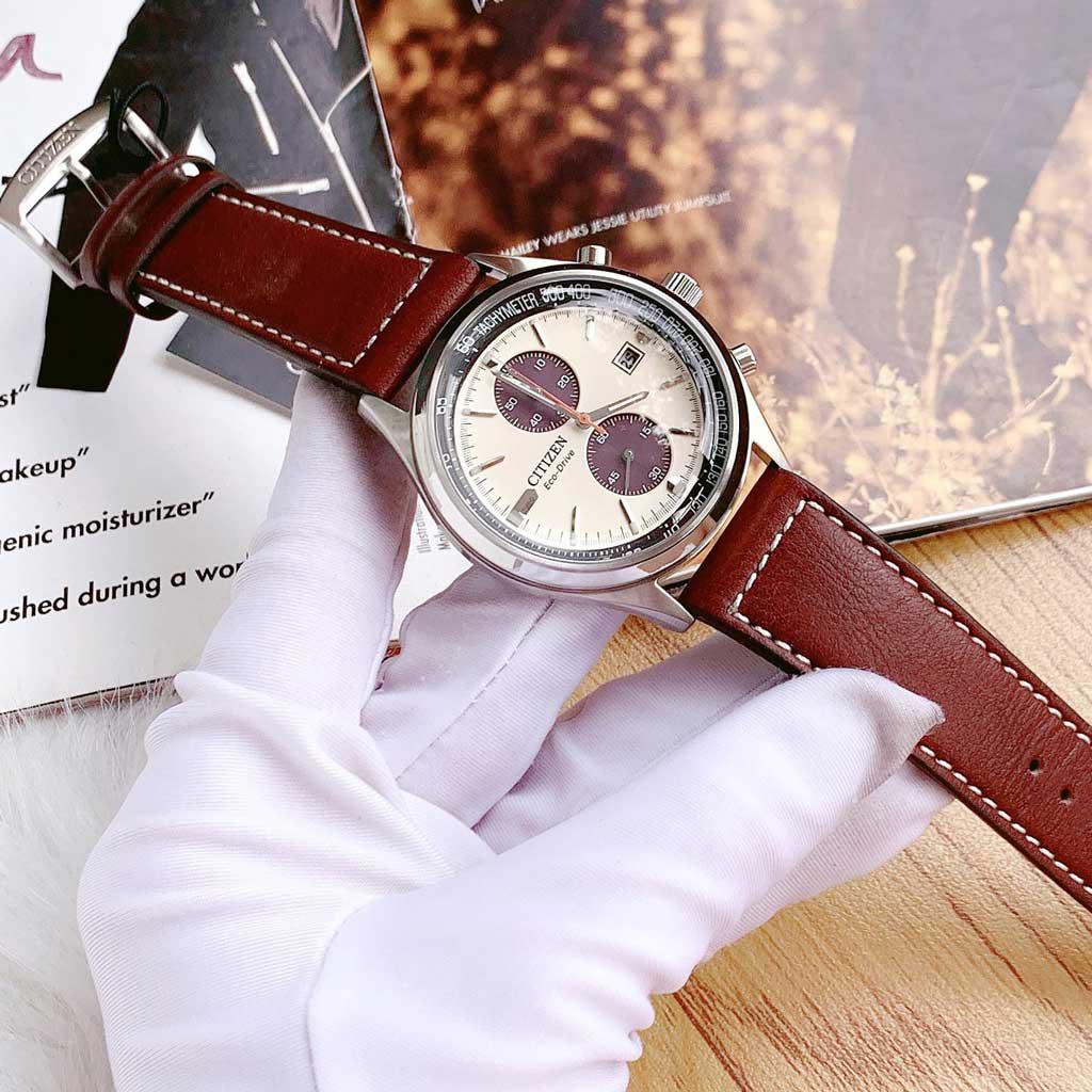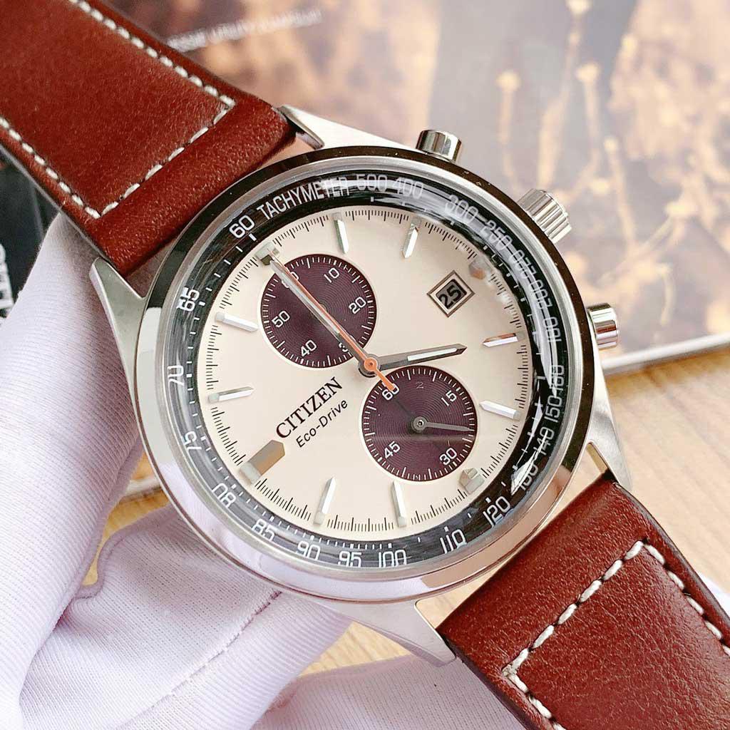 Citizen CA7020-07A. Thiết kế nam tính, mới lạ với dial màu be, dây da nâu lịch lãm!
