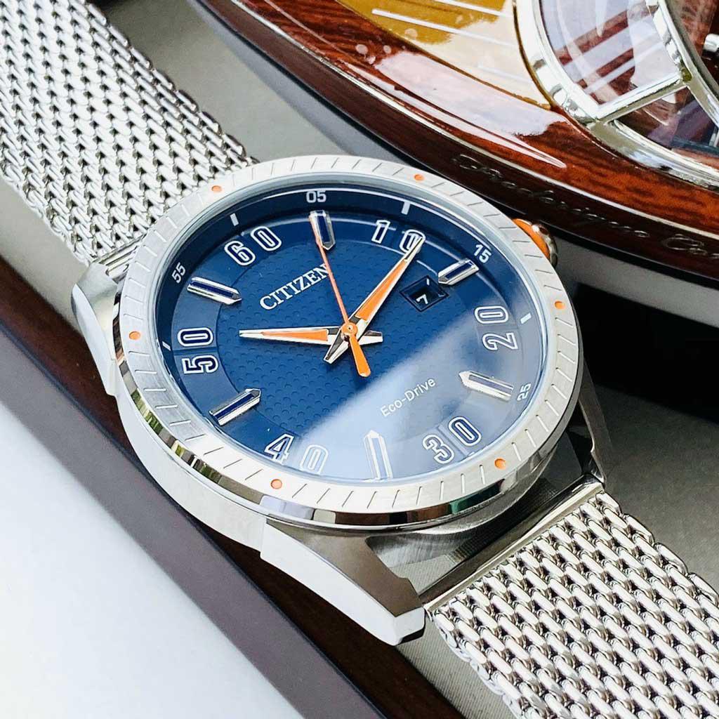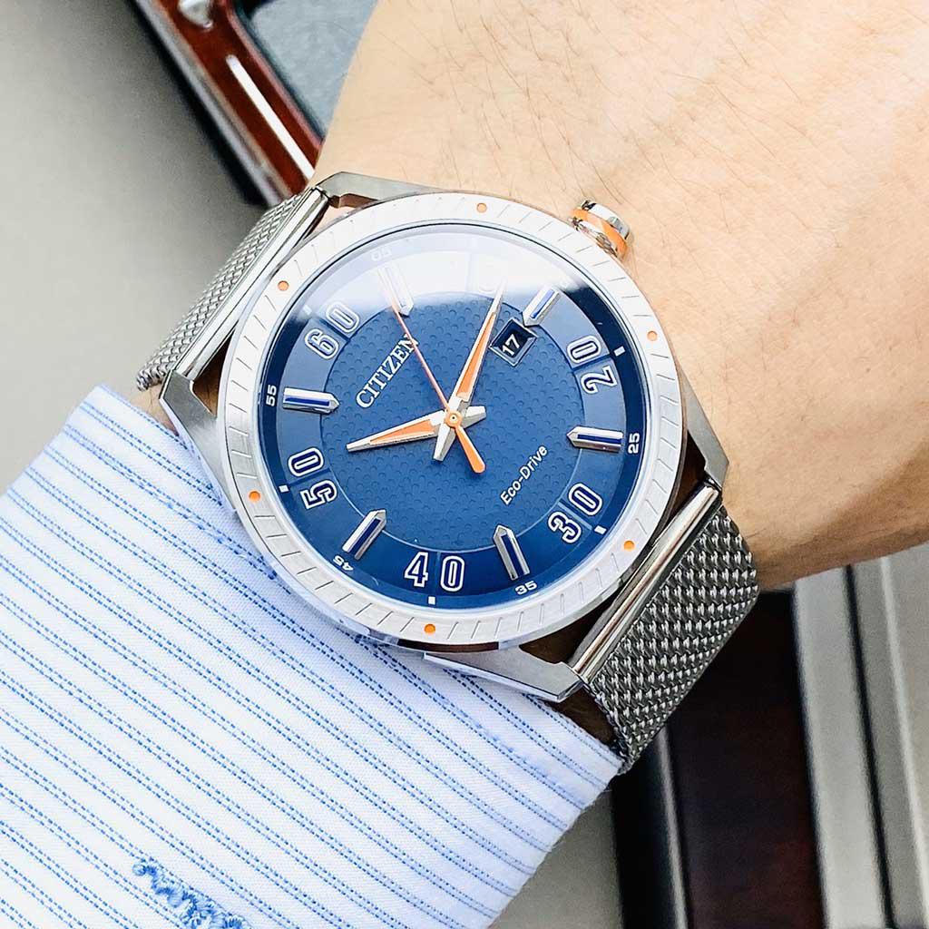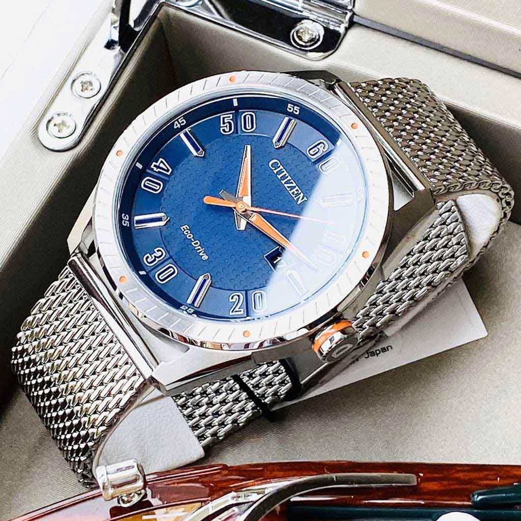 Citizen BM6990-55L Làn gió mới từ citizen, kim màu cam nổi bật trên nền dial xanh, dây mesh lưới mềm mại êm ái khi đeo… Đồng hồ Citizen Eco-Drive BM6990-55L được trang bị dây lưới thời thượng rất dễ để tự điều chỉnh cũng như ôm tay và tạo cảm giác thoải mái cho người sử dụng, lịch ngày ở góc 3 giờ. Ngoài ra, Citizen Eco-Drive BM6990-55L còn là mẫu đồng hồ chạy năng lượng mặt trời, tuổi thọ của pin có thể lên đến 8-10 năm. Một chiếc đồng hồ quả là rất đáng trải nghiệm của Citizen.