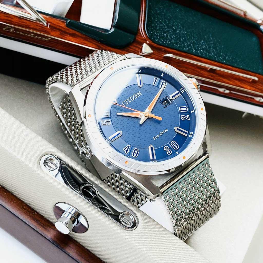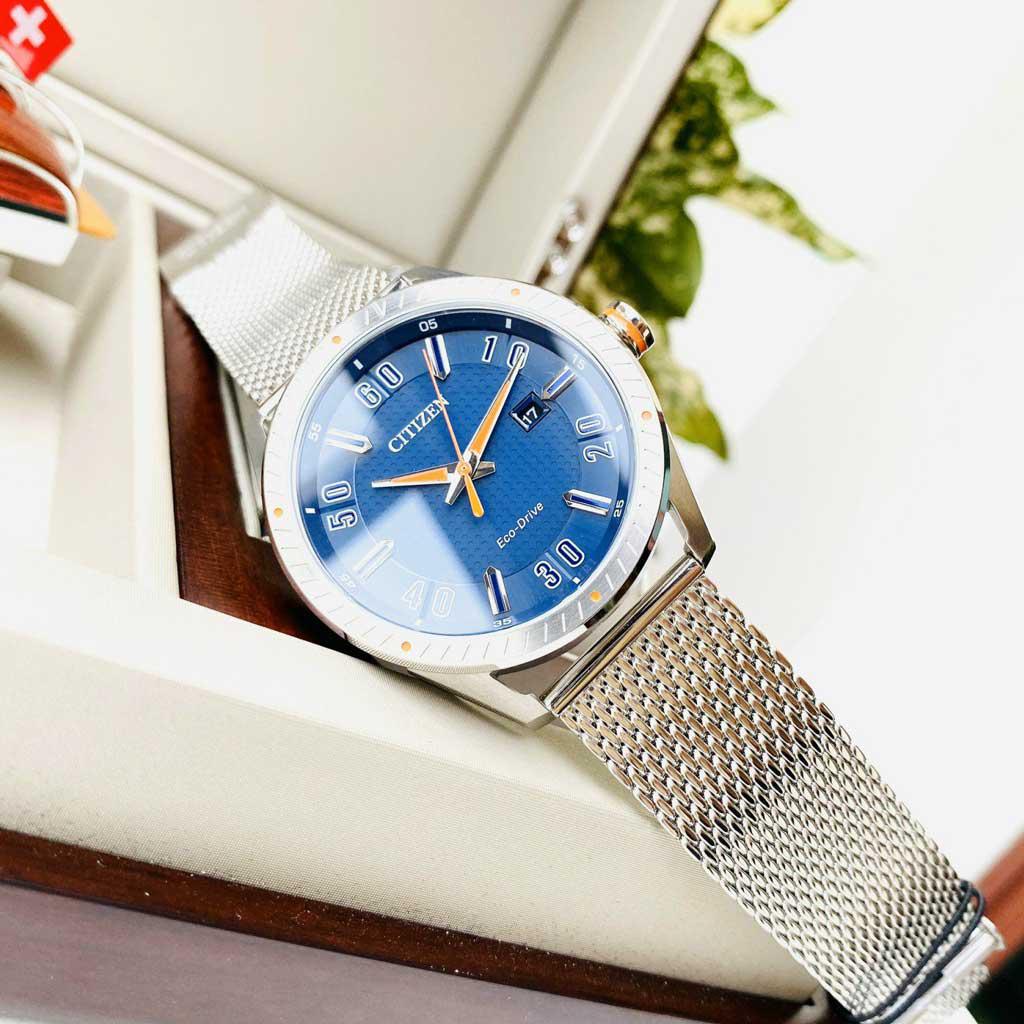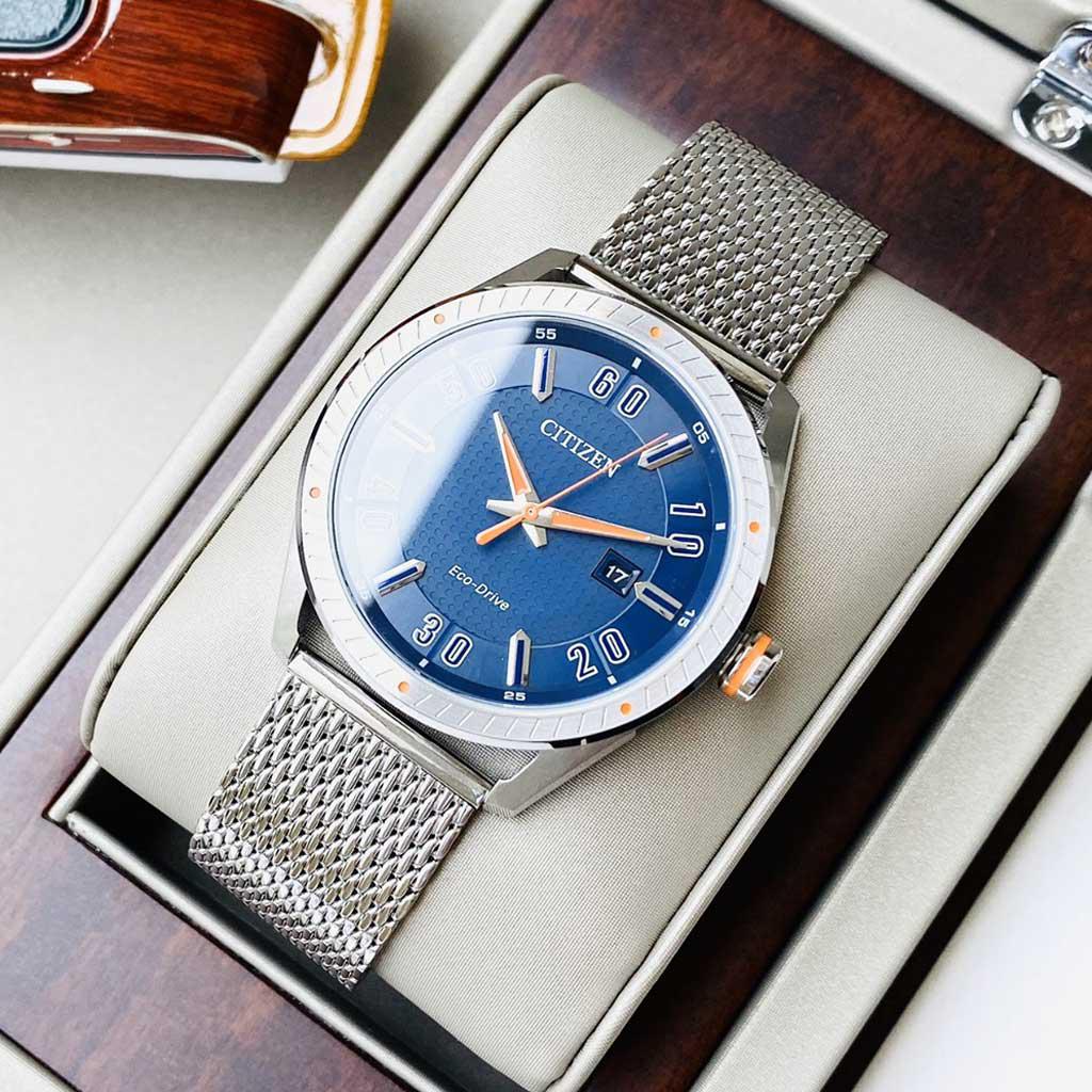 Citizen BM6990-55L Làn gió mới từ citizen, kim màu cam nổi bật trên nền dial xanh, dây mesh lưới mềm mại êm ái khi đeo… Đồng hồ Citizen Eco-Drive BM6990-55L được trang bị dây lưới thời thượng rất dễ để tự điều chỉnh cũng như ôm tay và tạo cảm giác thoải mái cho người sử dụng, lịch ngày ở góc 3 giờ. Ngoài ra, Citizen Eco-Drive BM6990-55L còn là mẫu đồng hồ chạy năng lượng mặt trời, tuổi thọ của pin có thể lên đến 8-10 năm. Một chiếc đồng hồ quả là rất đáng trải nghiệm của Citizen.