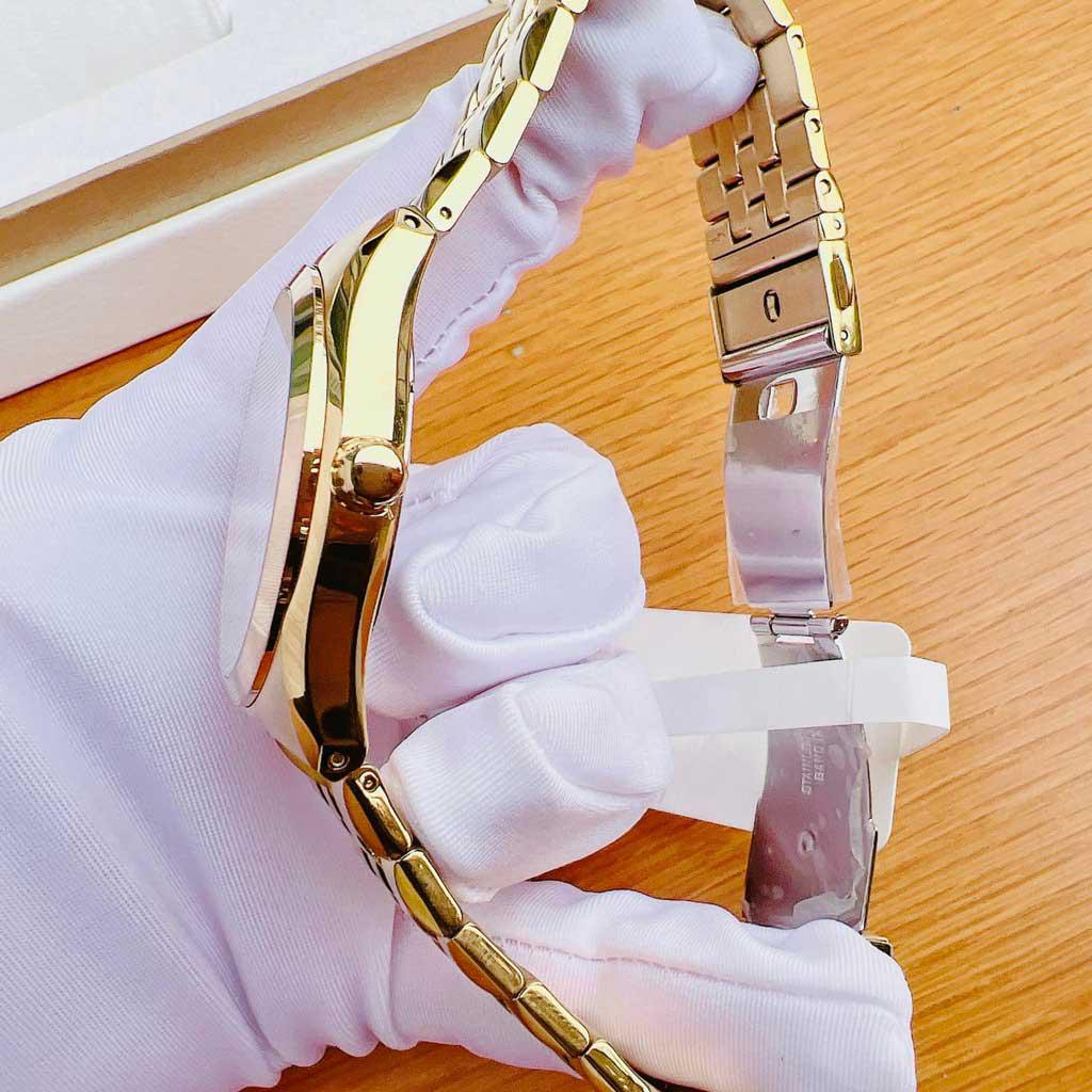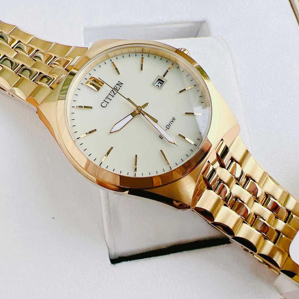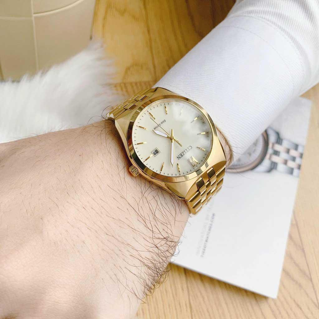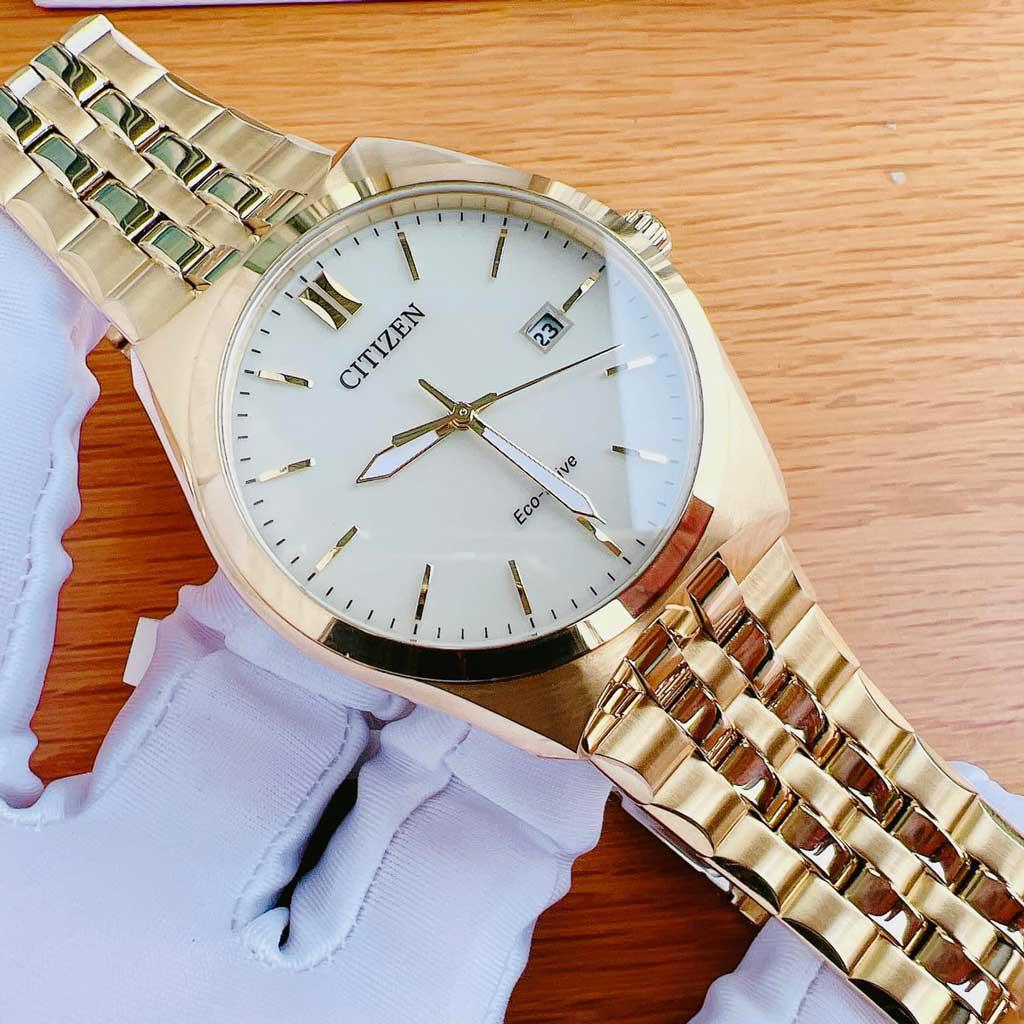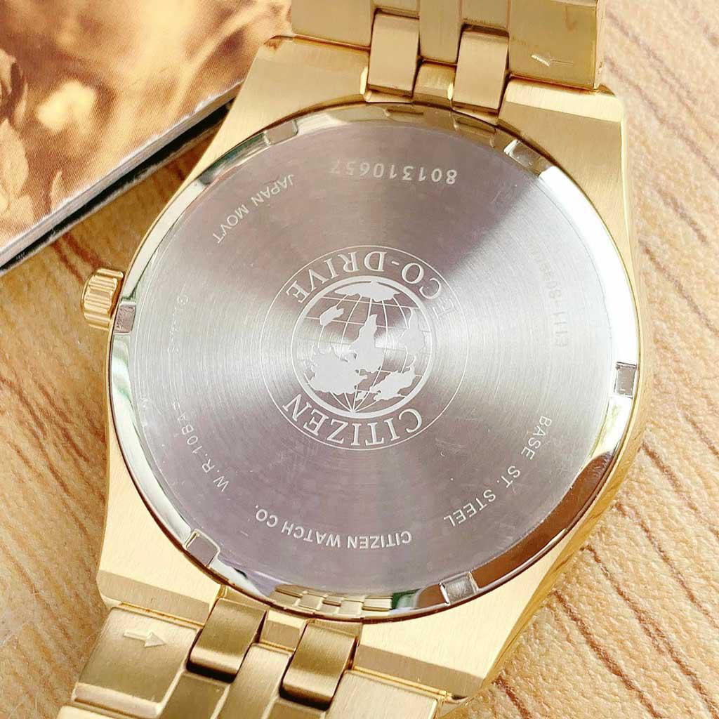 Đồng hồ Citizen nam BM7332-53P sở hữu tông màu vàng gold sang trọng, thiết kế đơn giản nhưng đầy tinh tế tôn lên vẻ ngoài nam tính của các quý ông. Mặt kính làm bằng kính khoáng chất có độ cứng khá cao nên hạn chế trầy xước và chịu lực tốt nên không bị vỡ khi va đập vô tình. Có thể nói, trên cùng một độ dày thì kính sapphire nguyên khối dễ vỡ hơn nhiều so với kính khoáng, kính khoáng cũng rất dễ đánh bóng nếu trầy, điều này cho phép chúng có thể đẹp bền rất lâu dài. Khung vỏ được làm bằng chất liệu thép không gỉ 316L là loại thép có hàm lượng carbon cực thấp giảm thiểu kết tủa cacbua khó chịu do hàn, hàm lượng niken và molypden cao hơn cho phép nó thể hiện tính chất chống ăn mòn tổng thể tốt hơn trong môi trường nước biển hoặc chất lỏng có tính axit như mồ hôi. Bên cạnh đó, thép 316L cũng chống lại các đặc tính từ tính.